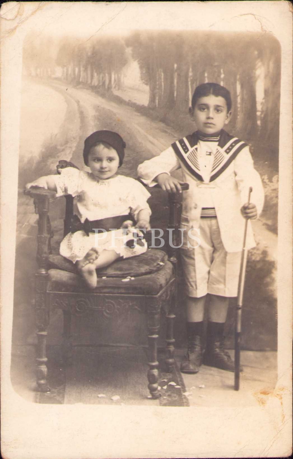 İki çocuk hatıra fotoğrafı, 1331 tarihli, yıpranmış haliyle