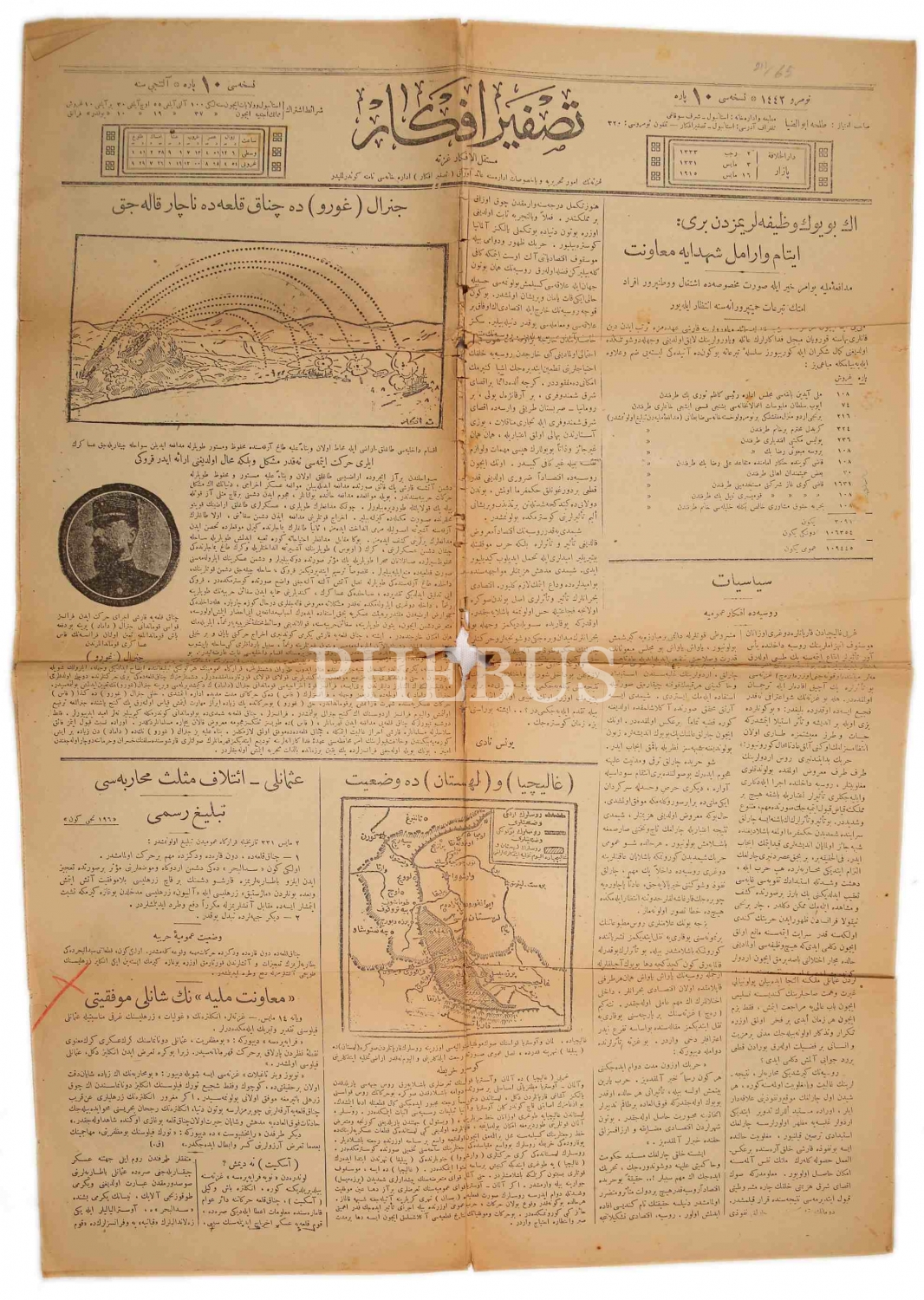 Osmanlıca Tasfîr-i Efkâr gazetesi, 16 Mayıs 1915, 4 sayfa, 42x62 cm, epey yıpranmış haliyle