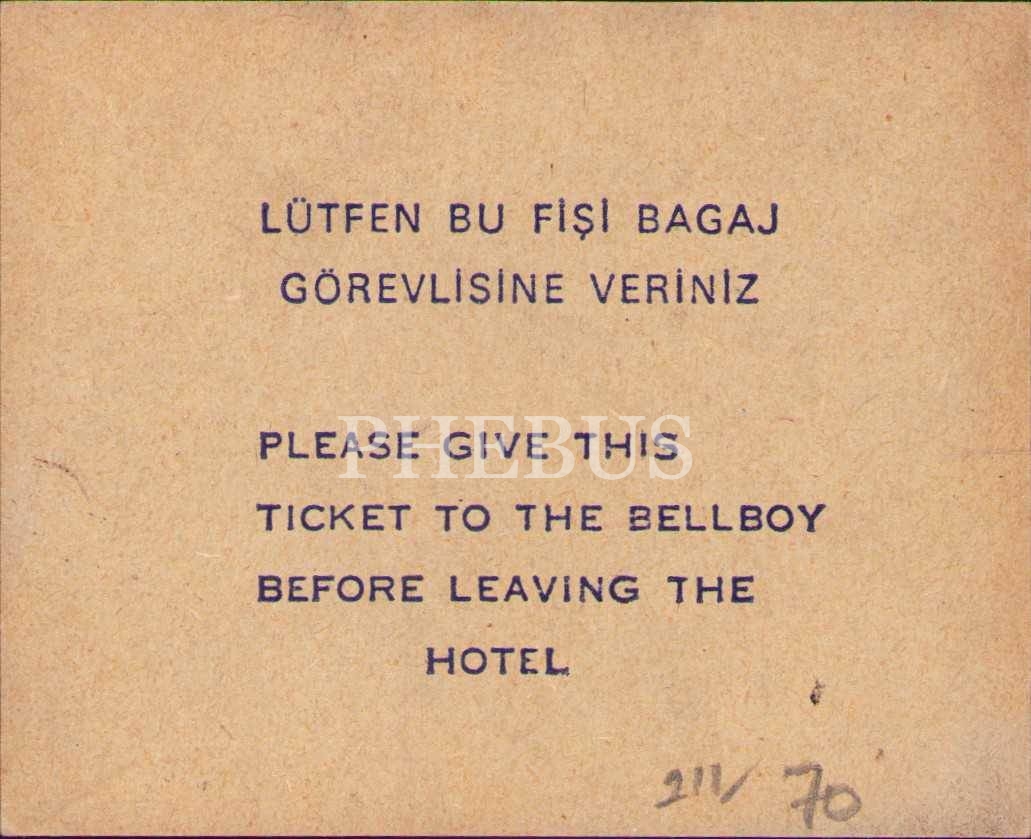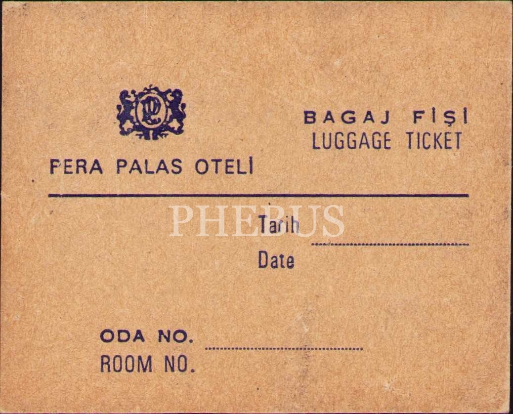 Pera Palas Oteli bagaj fişi, 7x8 cm