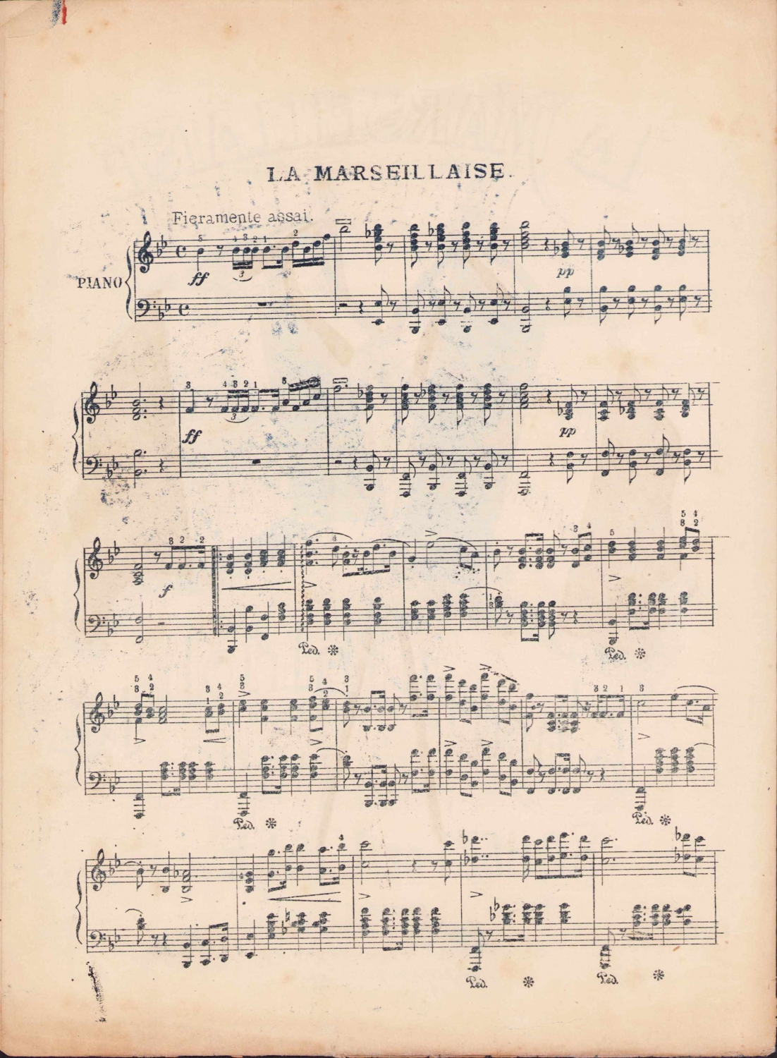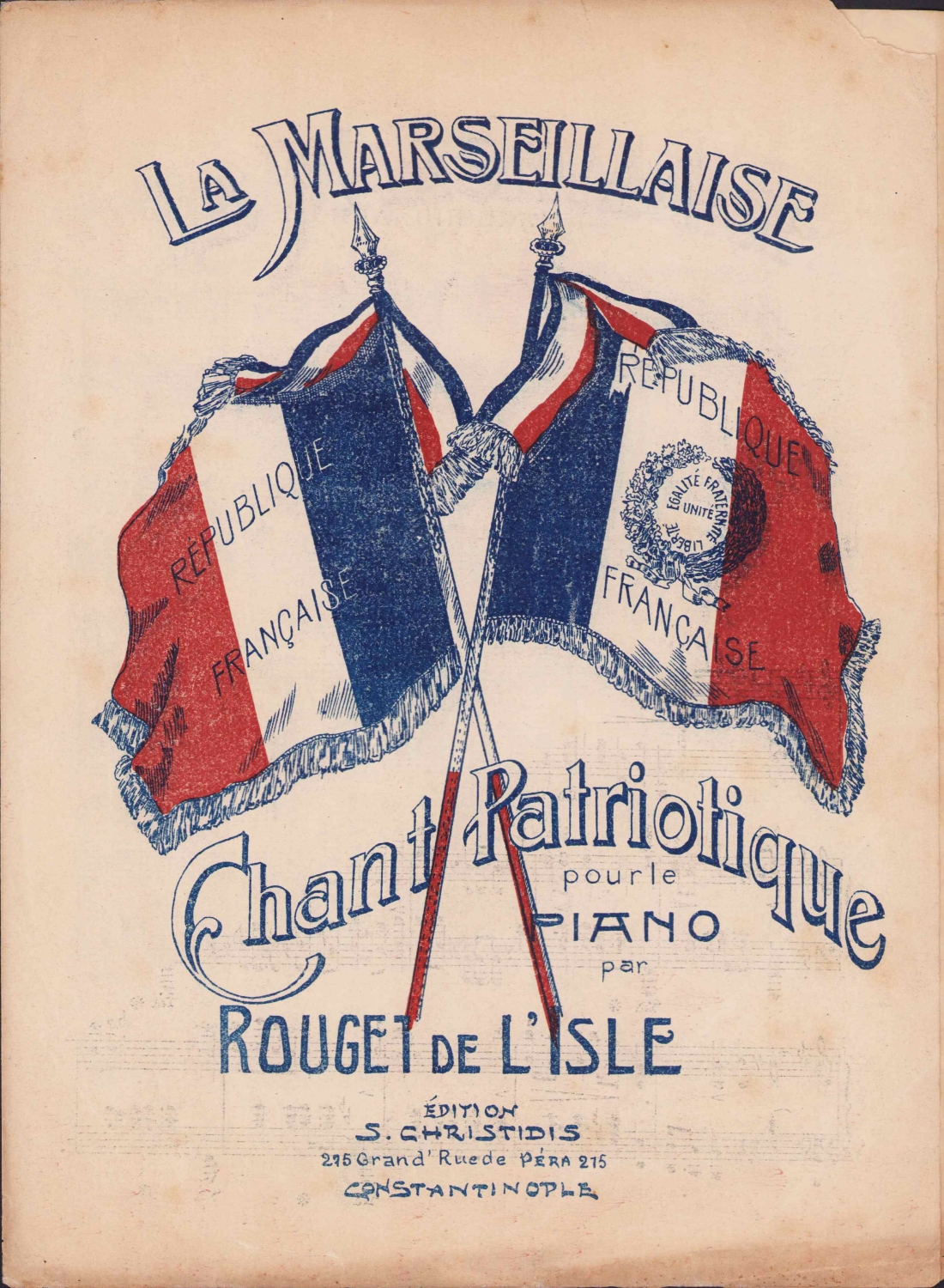 Marseillaise Fransız Cumhuriyeti Vatansever Şarkısı notası, Editör S. Christidis, Constantinople Pera baskısı, 2 yaprak 4 sayfa, 25x34cm
