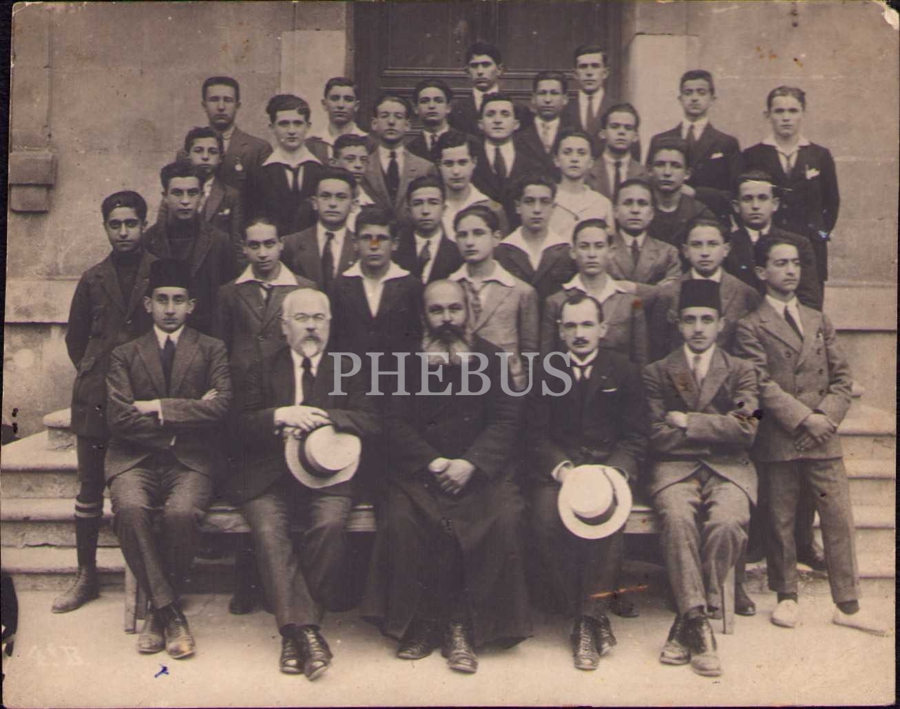 Azınlık okulu topluluk hatıra fotoğrafı, 1338 tarihli ve Osmanlıca ithaflı, 8x11 cm