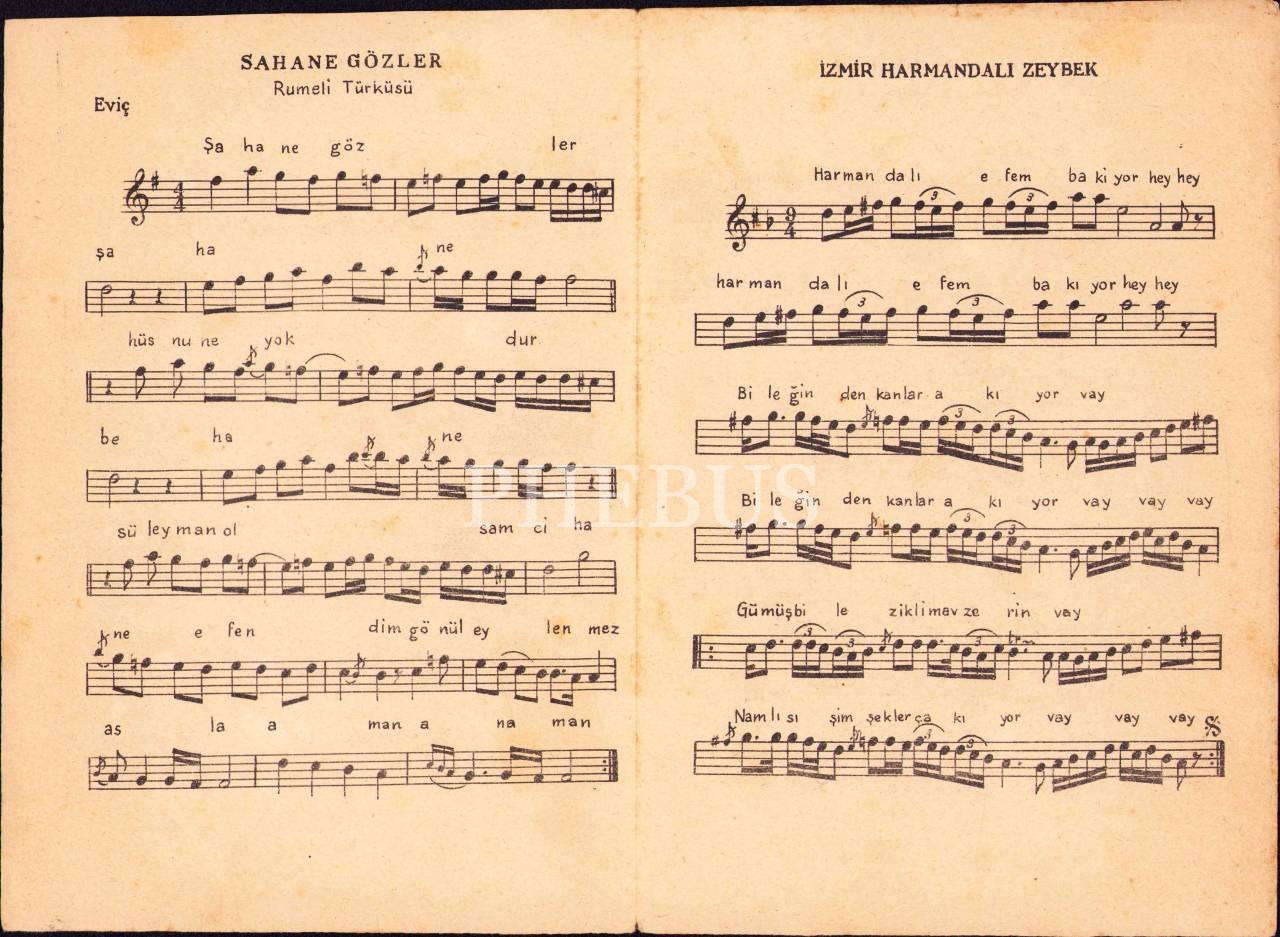İzmir Harmandalı Zeybek ve Şahane Gözler türkü notaları, Şamlı İskender Kutman Basımevi, 14x20 cm