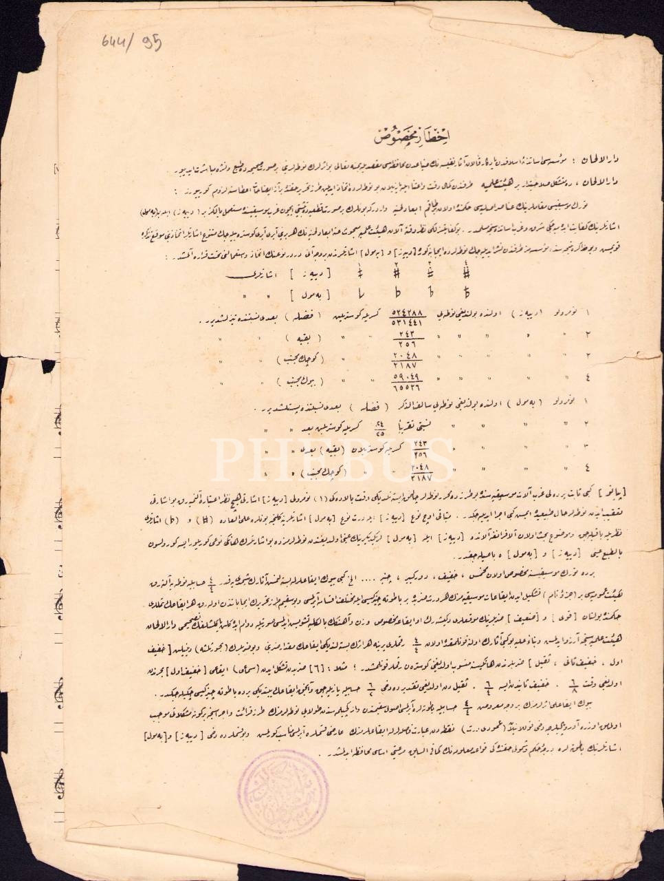 Darü'l-Elhân Külliyatı'ndan Hammamizade İsmail Dede'ye ait mahur murabba' notası, Osmanlıca güfteli, 25x34 cm, epey yıpranmış haliyle