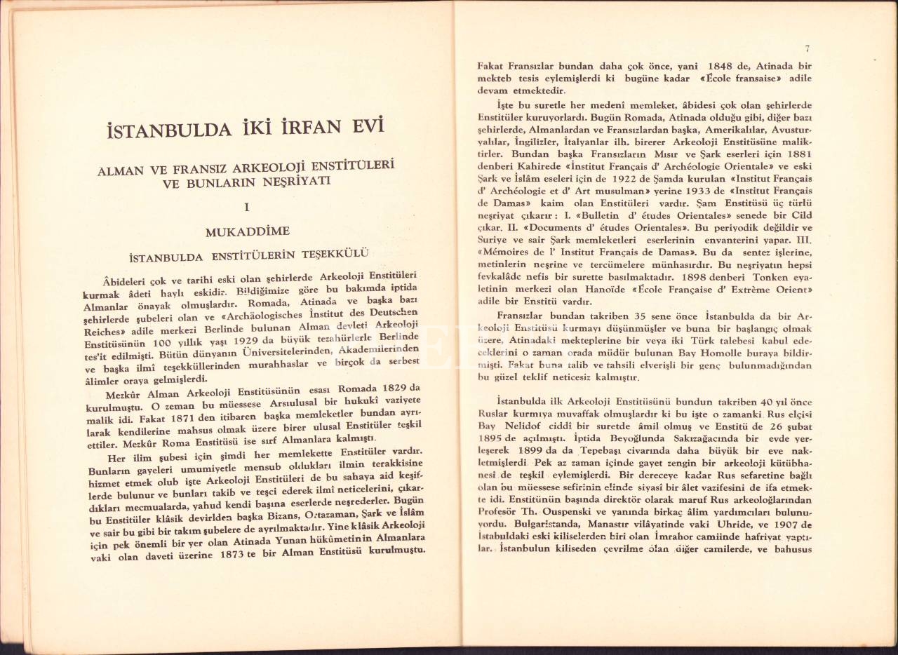 İstanbulda İki İrfan Evi-Alman ve Fransız Arkeoloji Enstitüleri ve Bunların Neşriyatı, Halil Etem, İstanbul 1937, 34 s., 17x23 cm