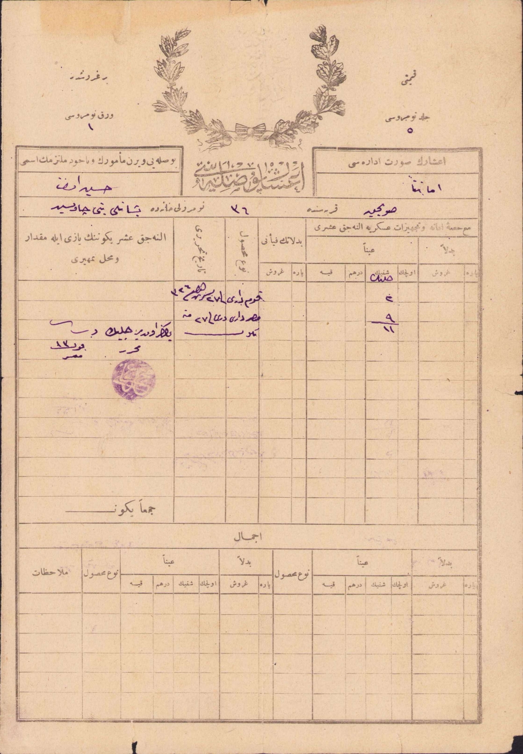 Osmanlı Hamidiye Hicaz Demiryolu Maliye Nezareti Antetli Aşar Pusulası, mühürlü, 19x27cm
