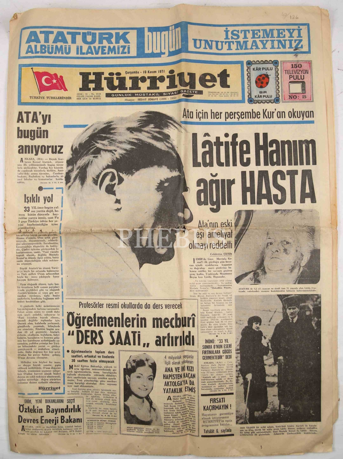 Hürriyet gazetesi, 10 Kasım 1971, 43x58 cm