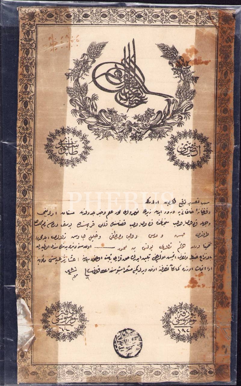 Osmanlıca mirî tarla arazisi tapu senedi, Karahisar-ı Sahib Sancağı, 1286 tarihli, 18x31 cm, yıpramış haliyle