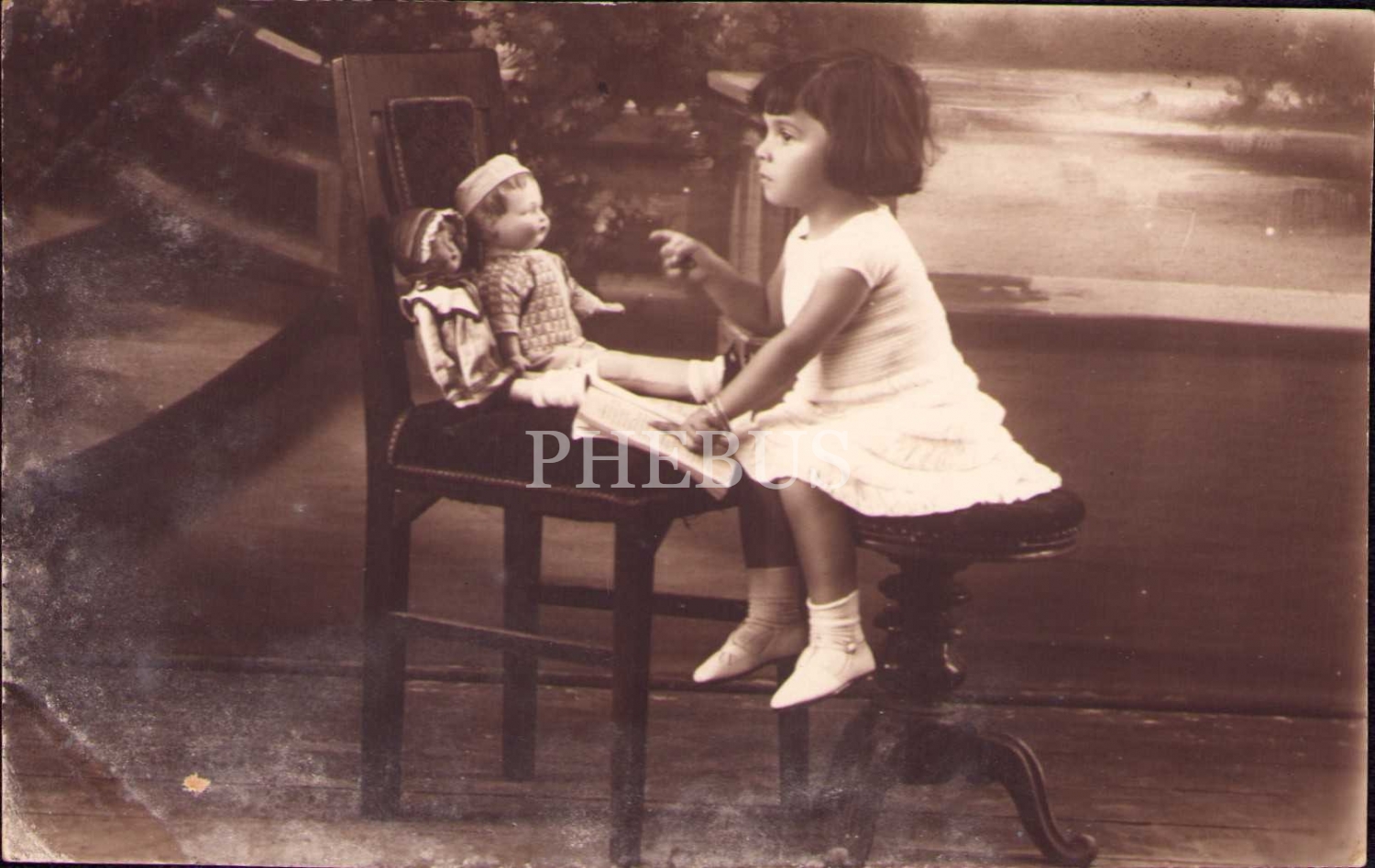 Oyuncakları ve kitabıyla poz veren kız çocuğu, 1931 tarihli