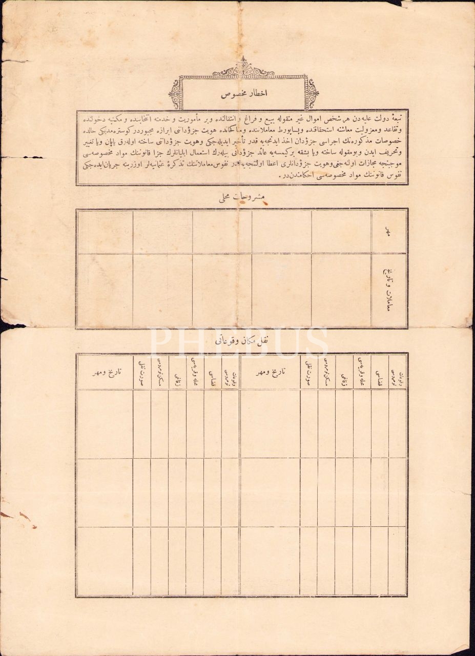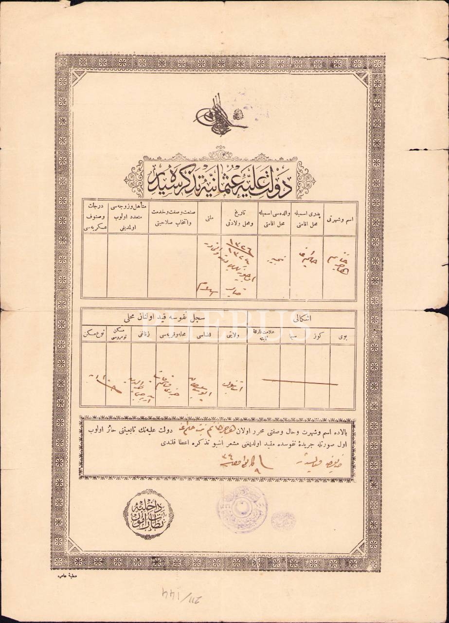 Osmanlıca 1334 tarihli nüfus tezkiresi, 25x35 cm, kenarları yırtılmış haliyle