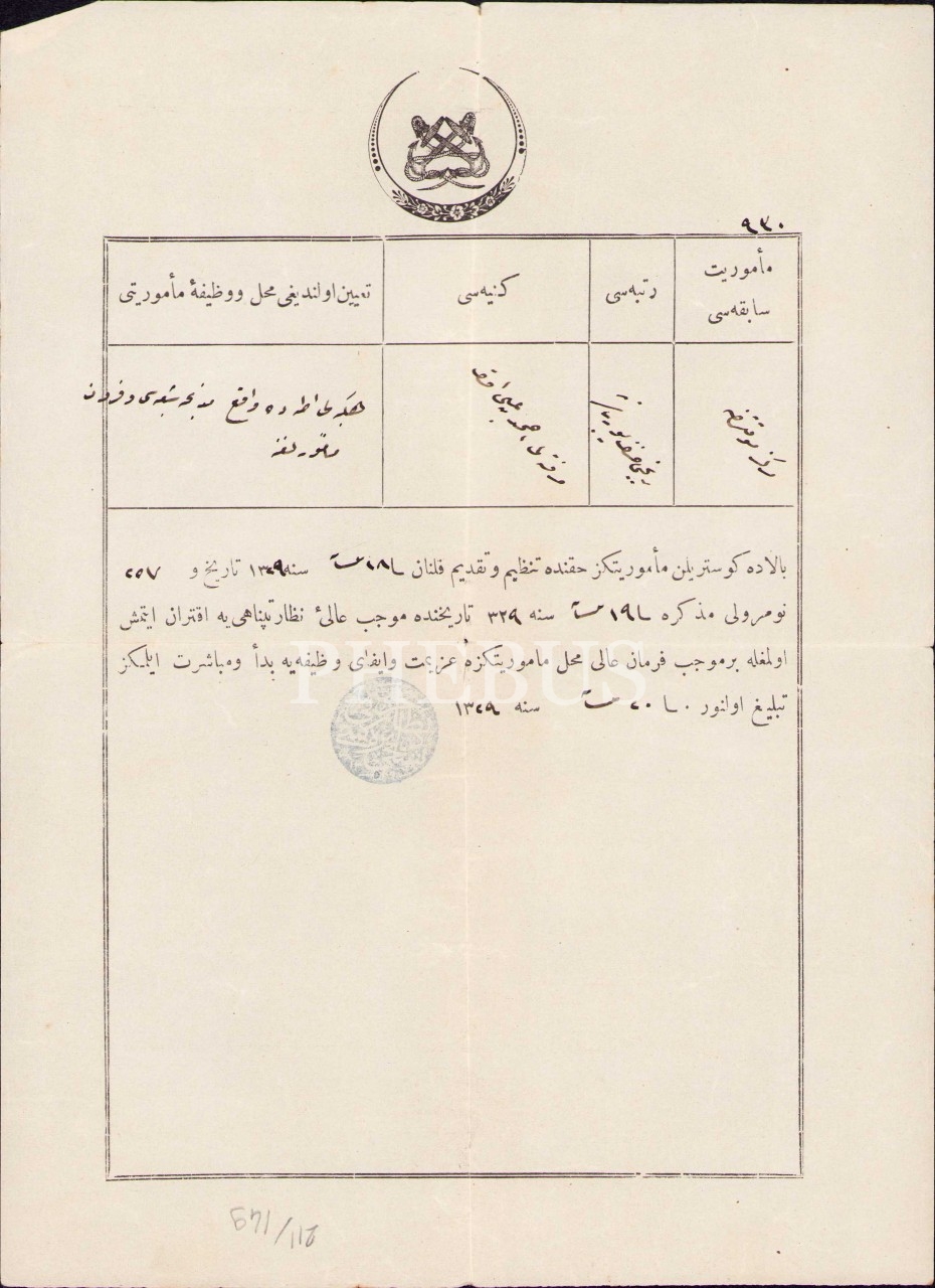 Osmanlıca memur atama belgesi, 1329 tarihli, 20x28 cm