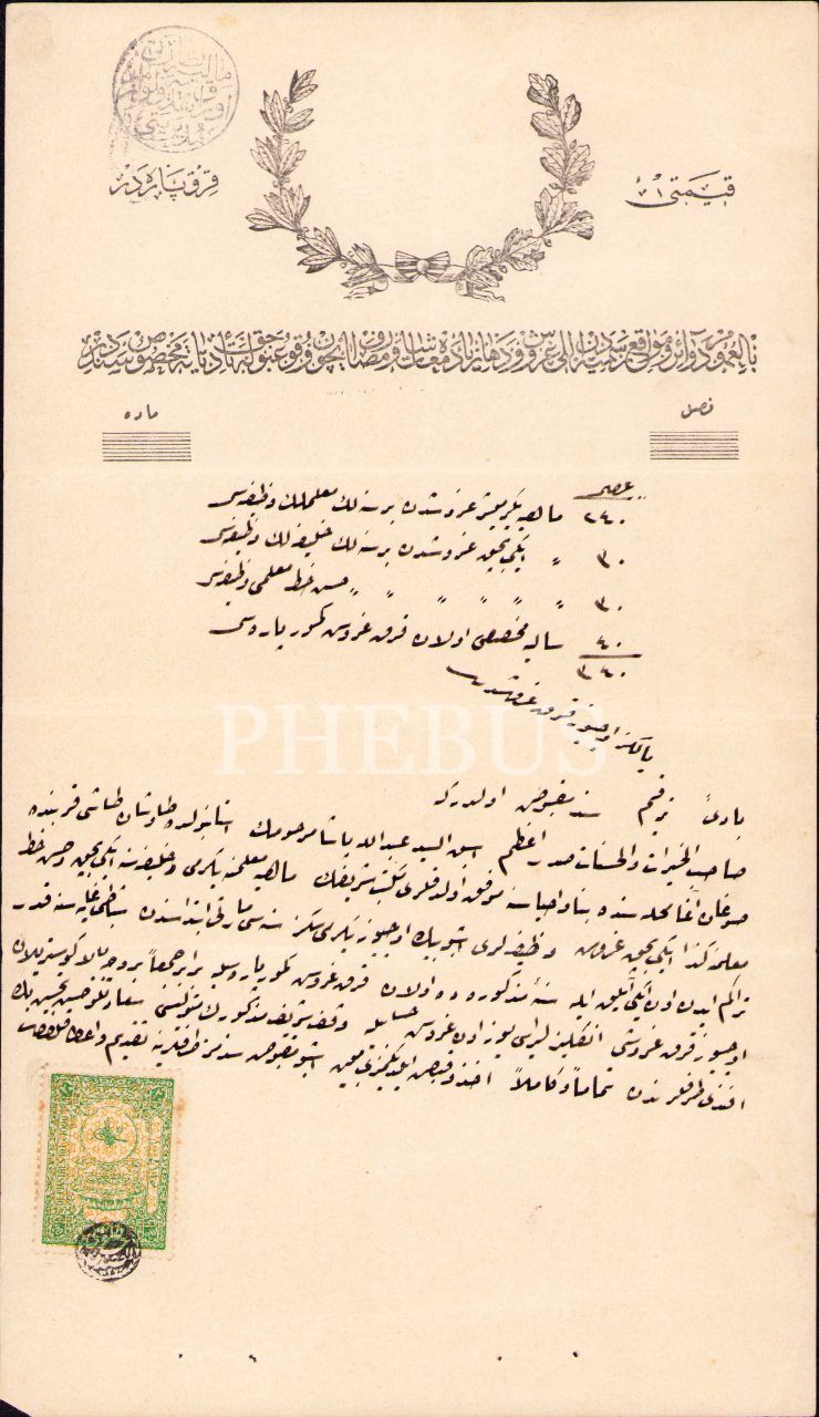 Osmanlıca makbuz senedi, 16x28 cm