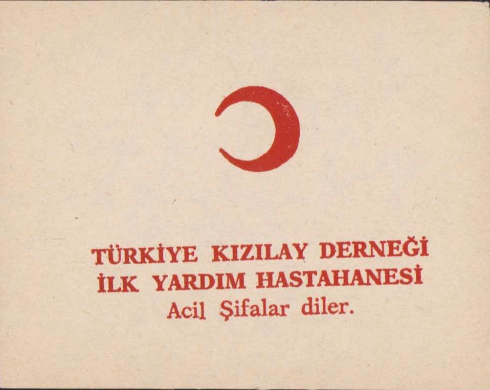 Türkiye Kızılay Derneği İlk Yardım Hastanesi yazılı etiket, 8x6,5cm