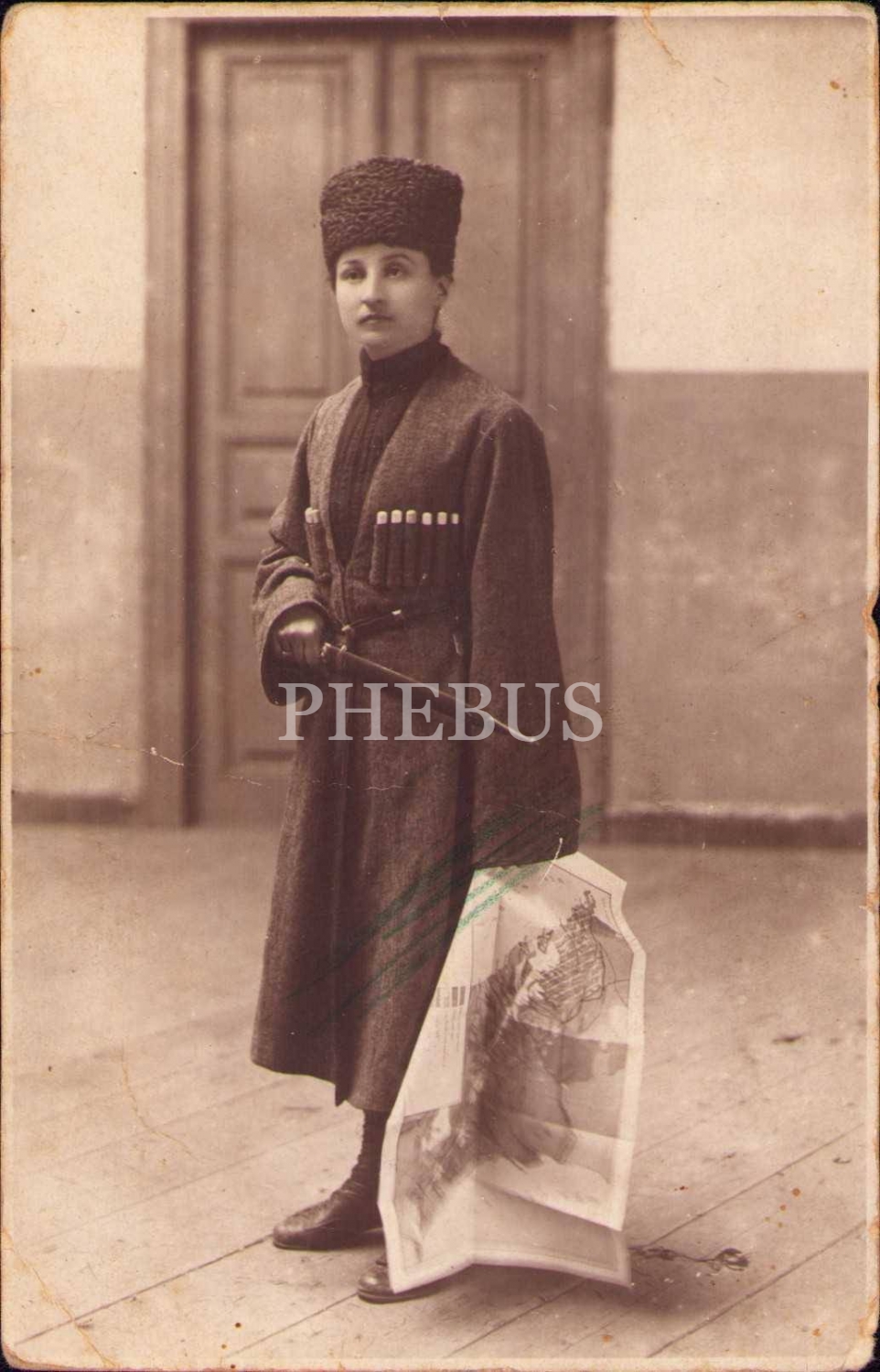 Kafkas kıyafetiyle poz veren genç kadın, Osmanlıca ithaflı ve 1922 tarihli, yıpranmış haliyle