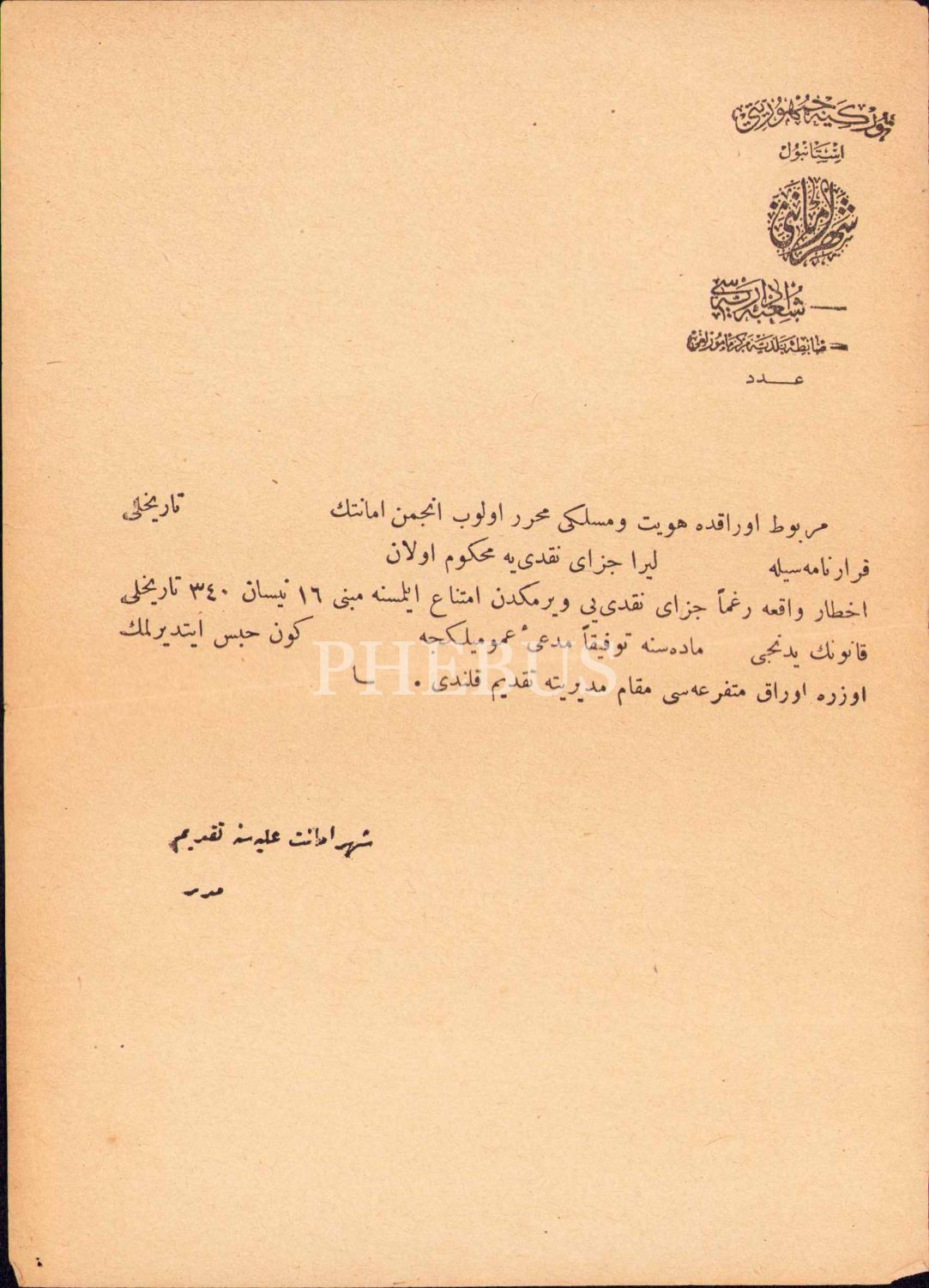 Osmanlıca İstanbul Şehremaneti Zabıta Memurluğu antetli boş evrak, 15x21 cm