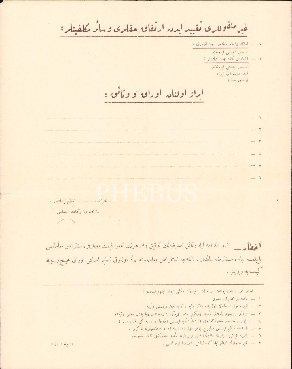Osmanlıca Emlak ve Eytam Bankası İstikraz Talebnamesi [Kredi Talebi] antetli boş evrak, 24x30 cm