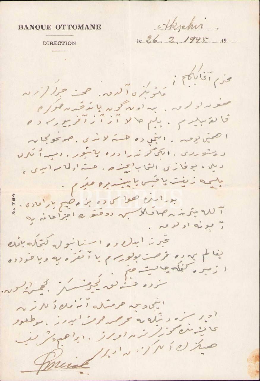 Banque Ottomane antetli kâğıtta Osmanlıca şahsi mektup, 14x21 cm