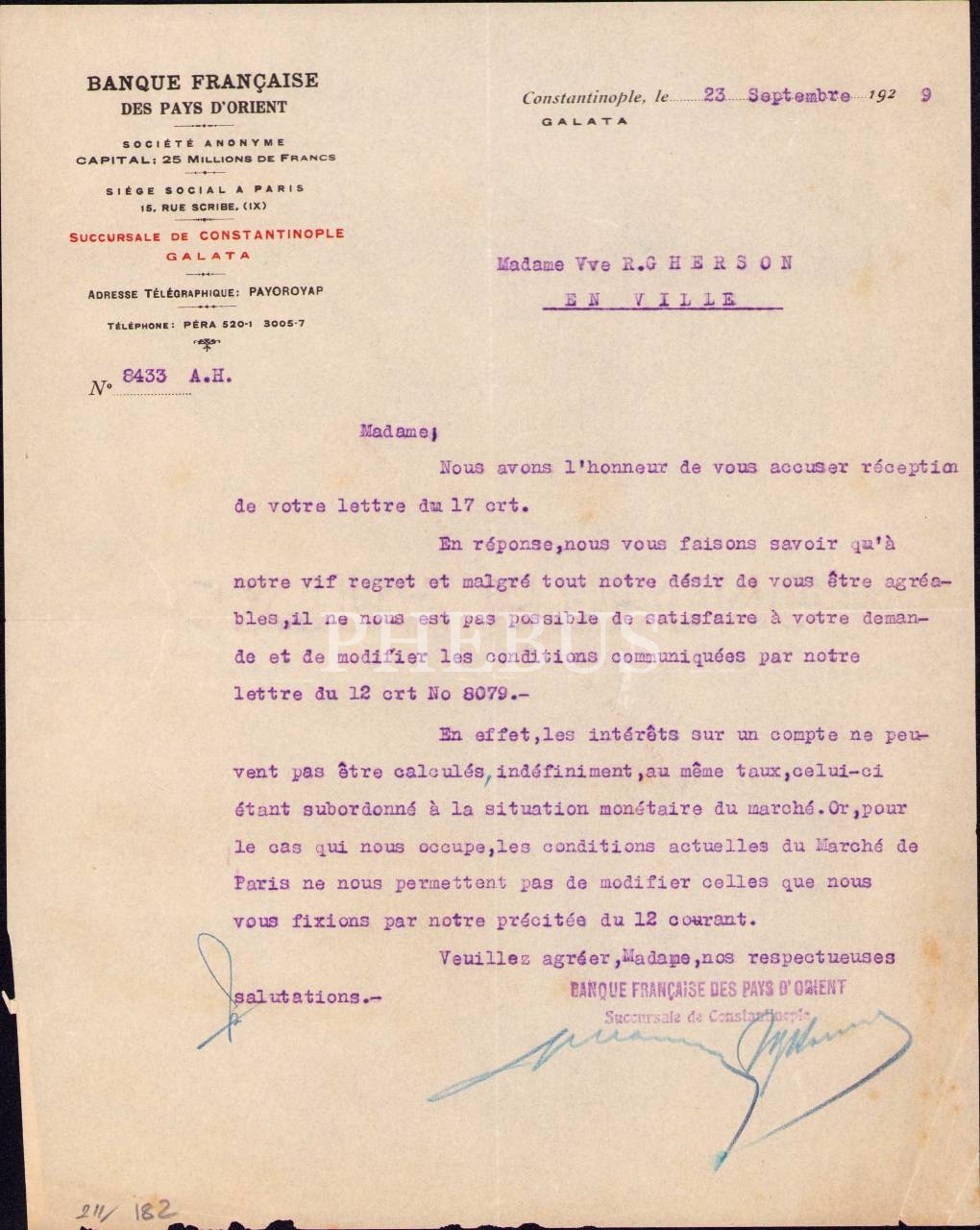 Banque Française antetli Fransızca evrak, 1929 tarihli, 22x27 cm