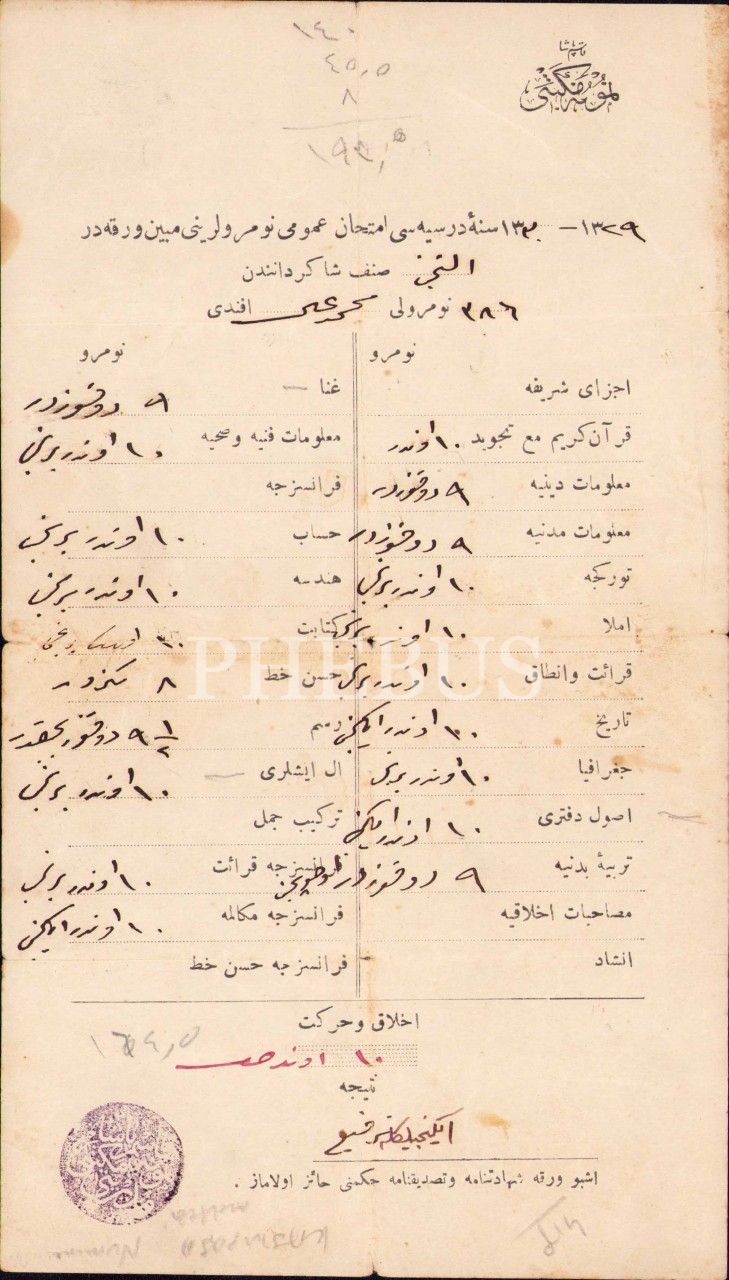 Osmanlıca Kasımpaşa Numune Mektebi antetli not döküm kâğıdı, 1330 tarihli, 14x24 cm, yorgun haliyle