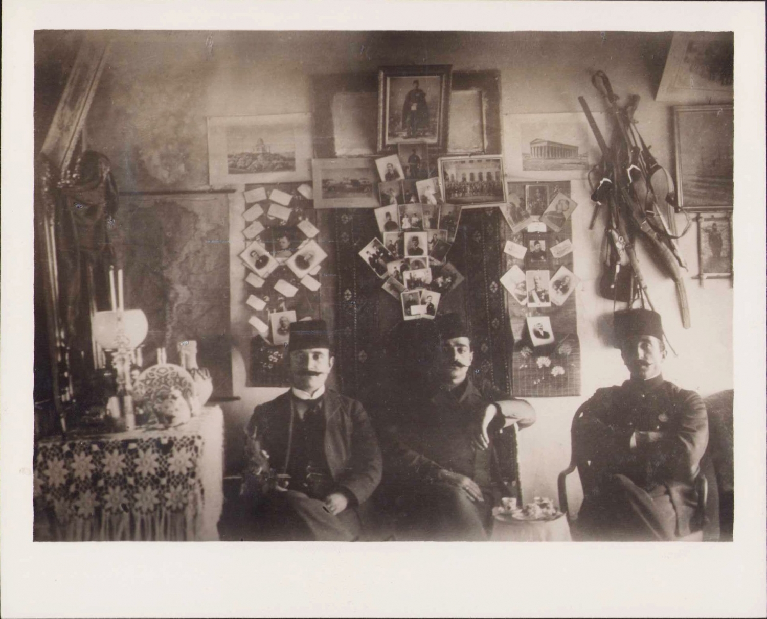 Osmanlı dönemi fesli, madalyalı tipler, kahve kültürü, tüfek ve kılıç detaylı, albümden çıkma, 16,5x13cm