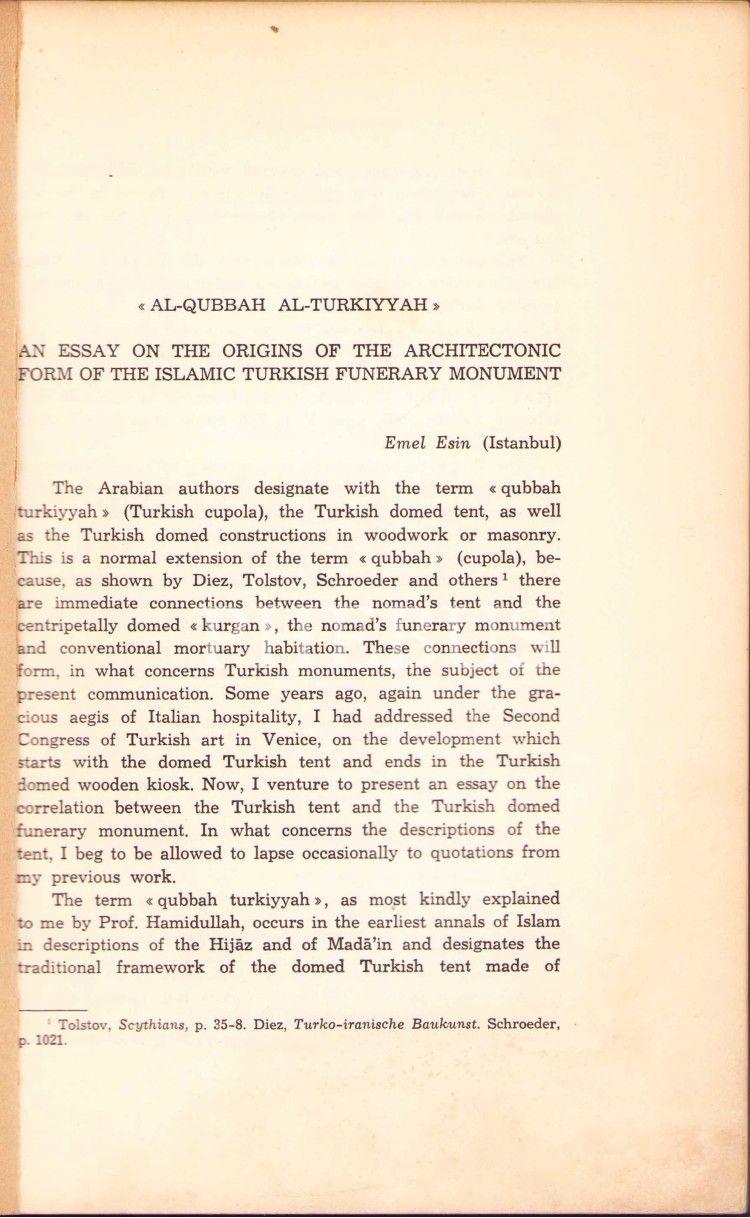 İngilizce "Al-Qubbah Al-Turkiyyah", Emel Esin, Napoli 1967, 17x24 cm, kapağı yıpranmış haliyle