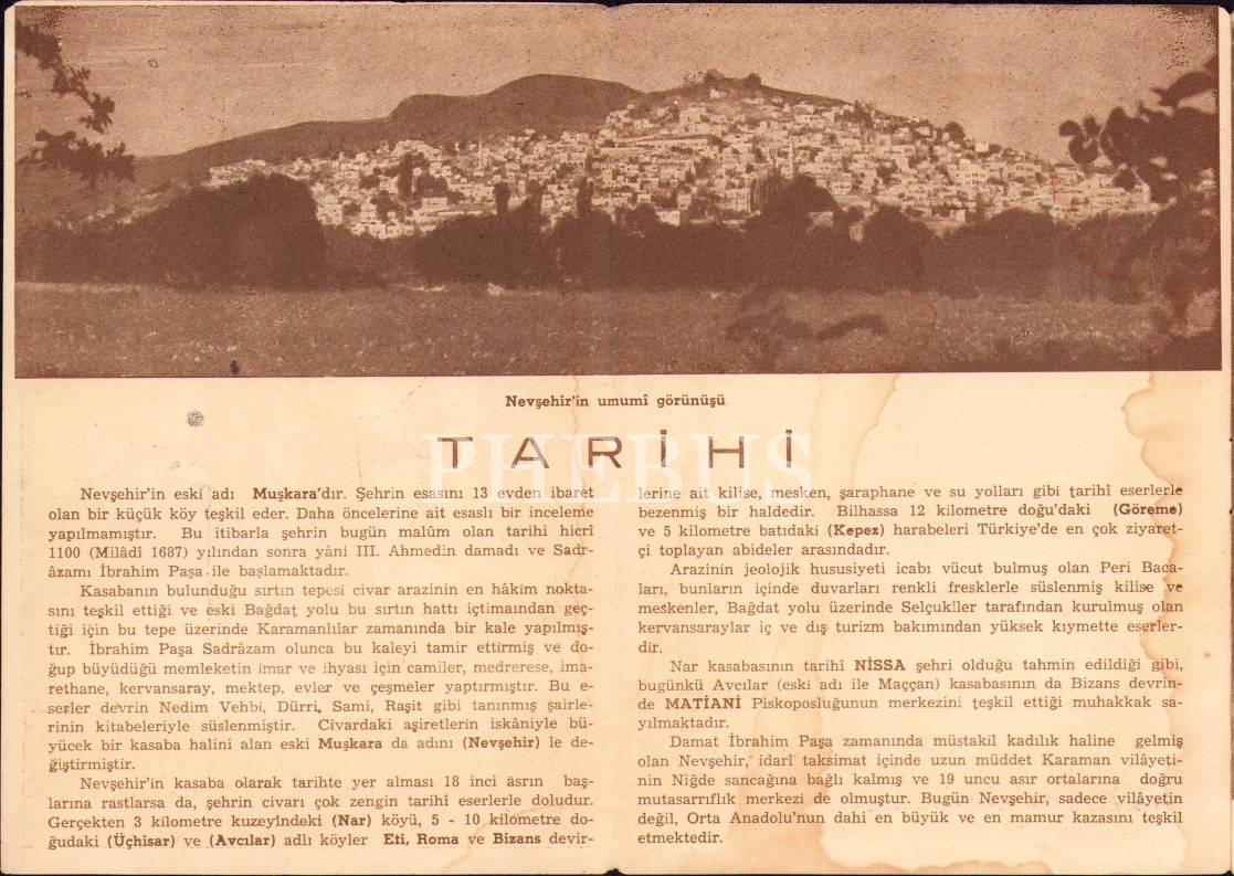 Nevşehir-Göreme tanıtım broşürü, Nevşehir Kültür ve Yardımlaşma Derneği Neşriyatı, 12x17 cm, su görmüş haliyle