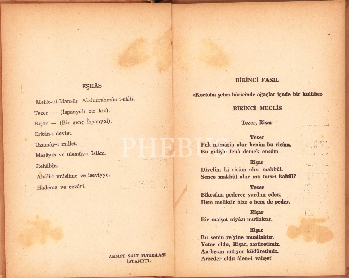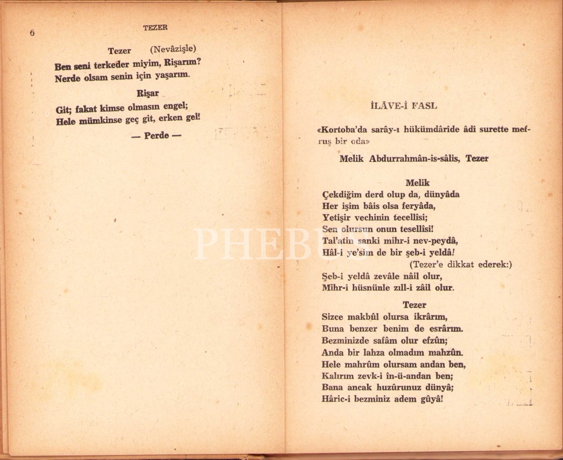 Tezer Yahut Melik Abdurrahmân-is-sâlis, Abdülhak Hamid, Kanaat Kitabevi, 1945, 125 s., 12x18 cm, cildi yıpranmış haliyle