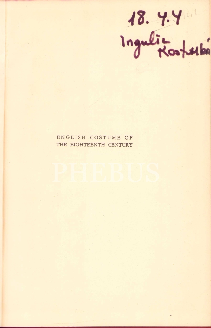 İngilizce English Costume of the Eighteenth Century, Iris Brooke-James Laver, Büyük Britanya 1958, 86 s., 16x23 cm, cildi yorgun haliyle