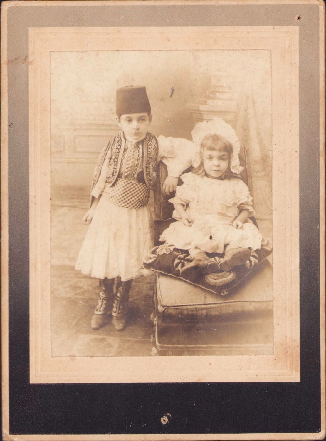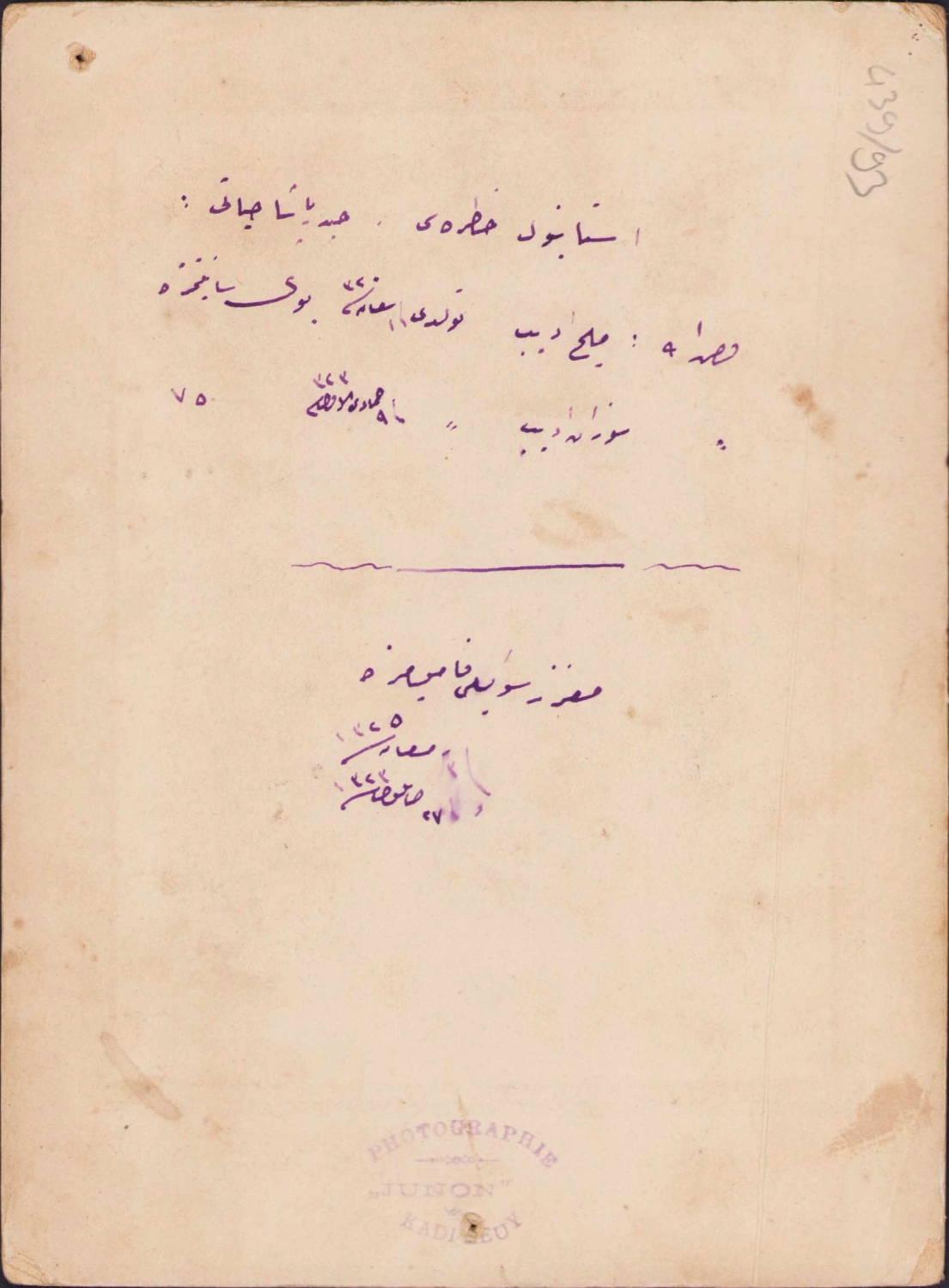 Osmanlı Çocuk, Foto Junon Kadıköy damgalı, stüdyo çekim kabin foto., fes detaylı, arkası Osmanlıca ithaflı İstanbul 1323 tarihli, 14x19cm
