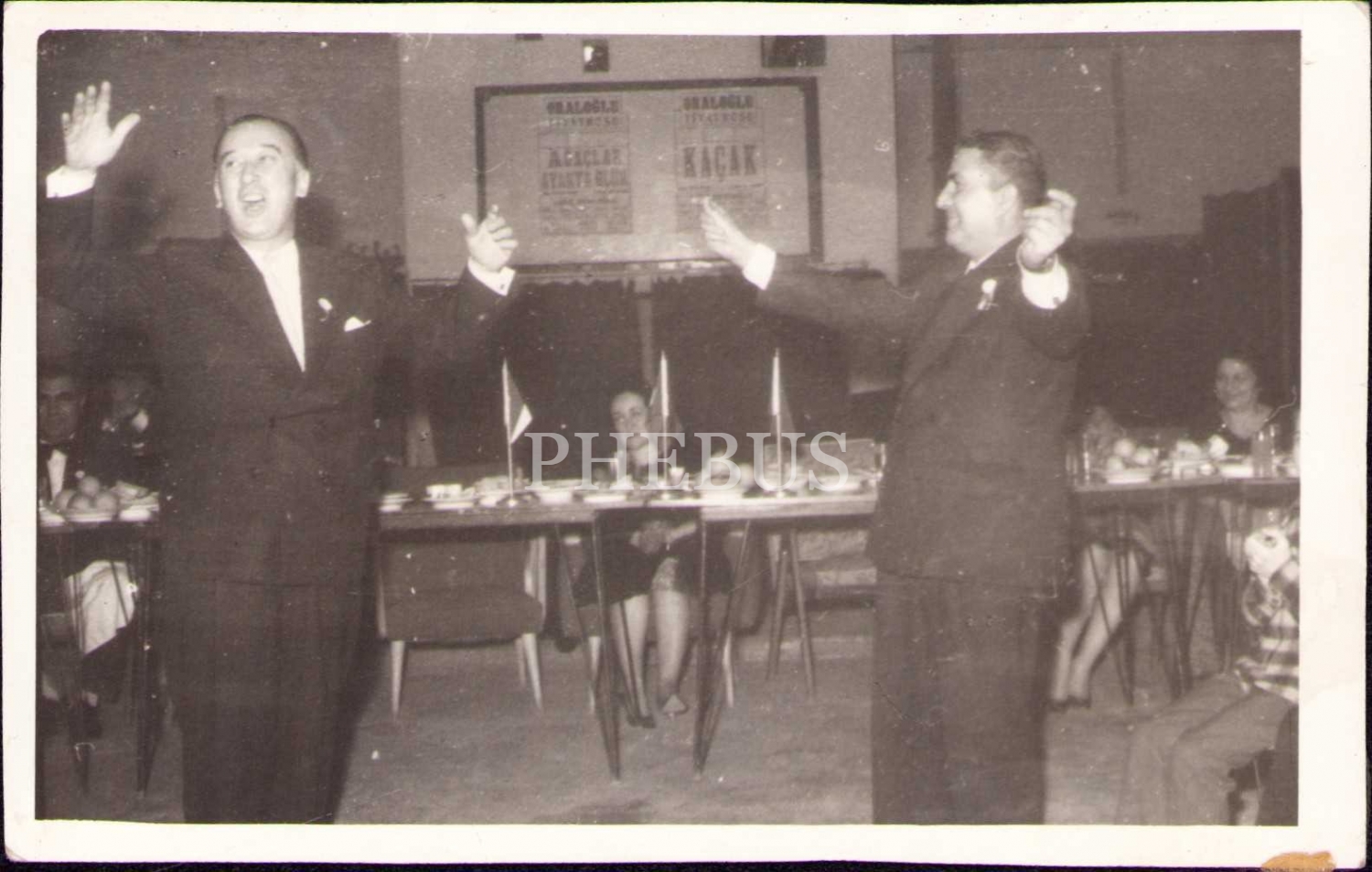 Oraloğlu Tiyatrosu afişlerinin görüldüğü kutlama fotoğrafı