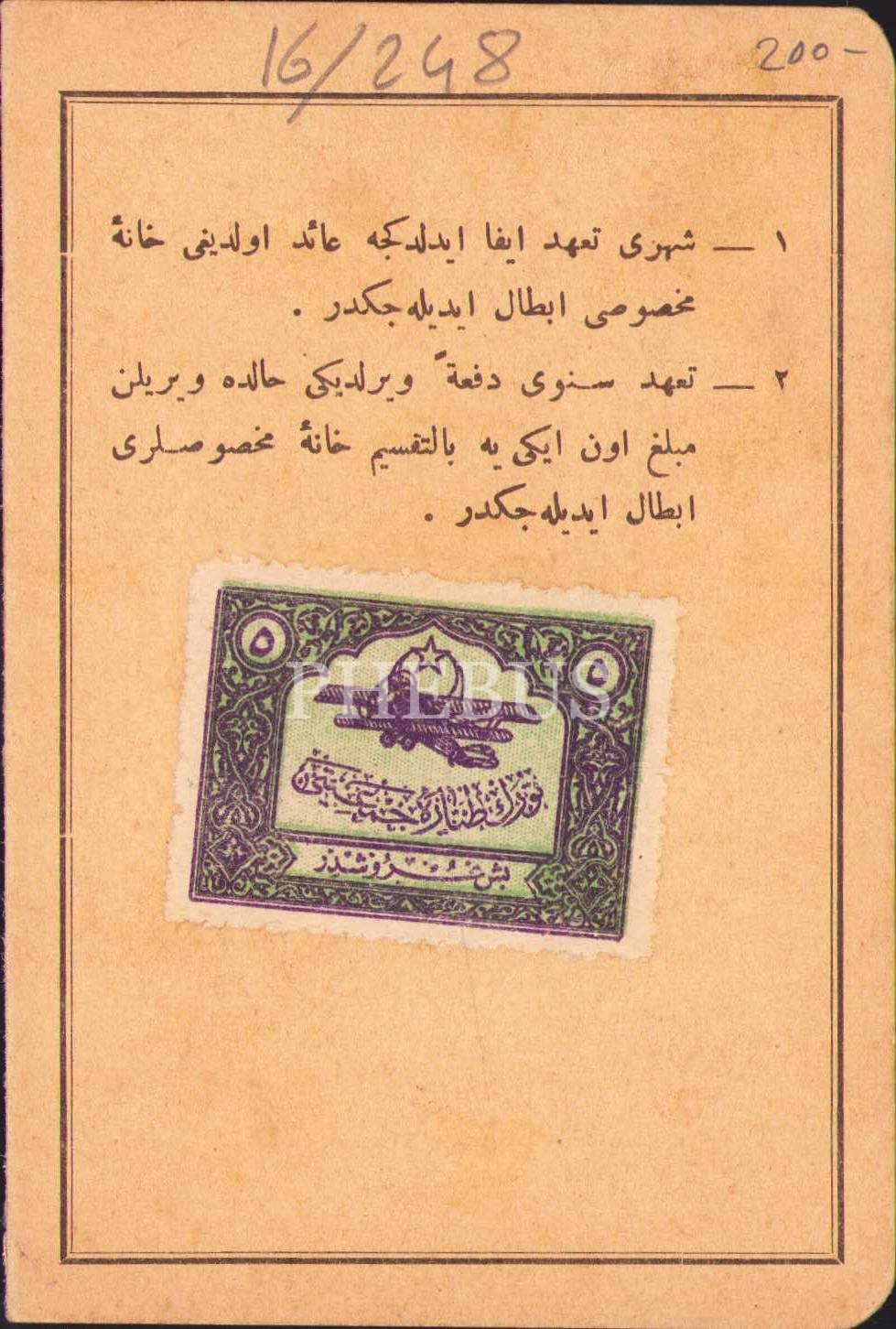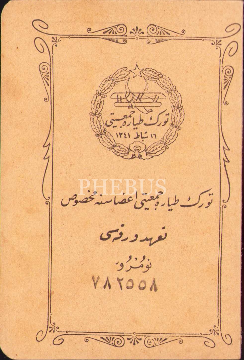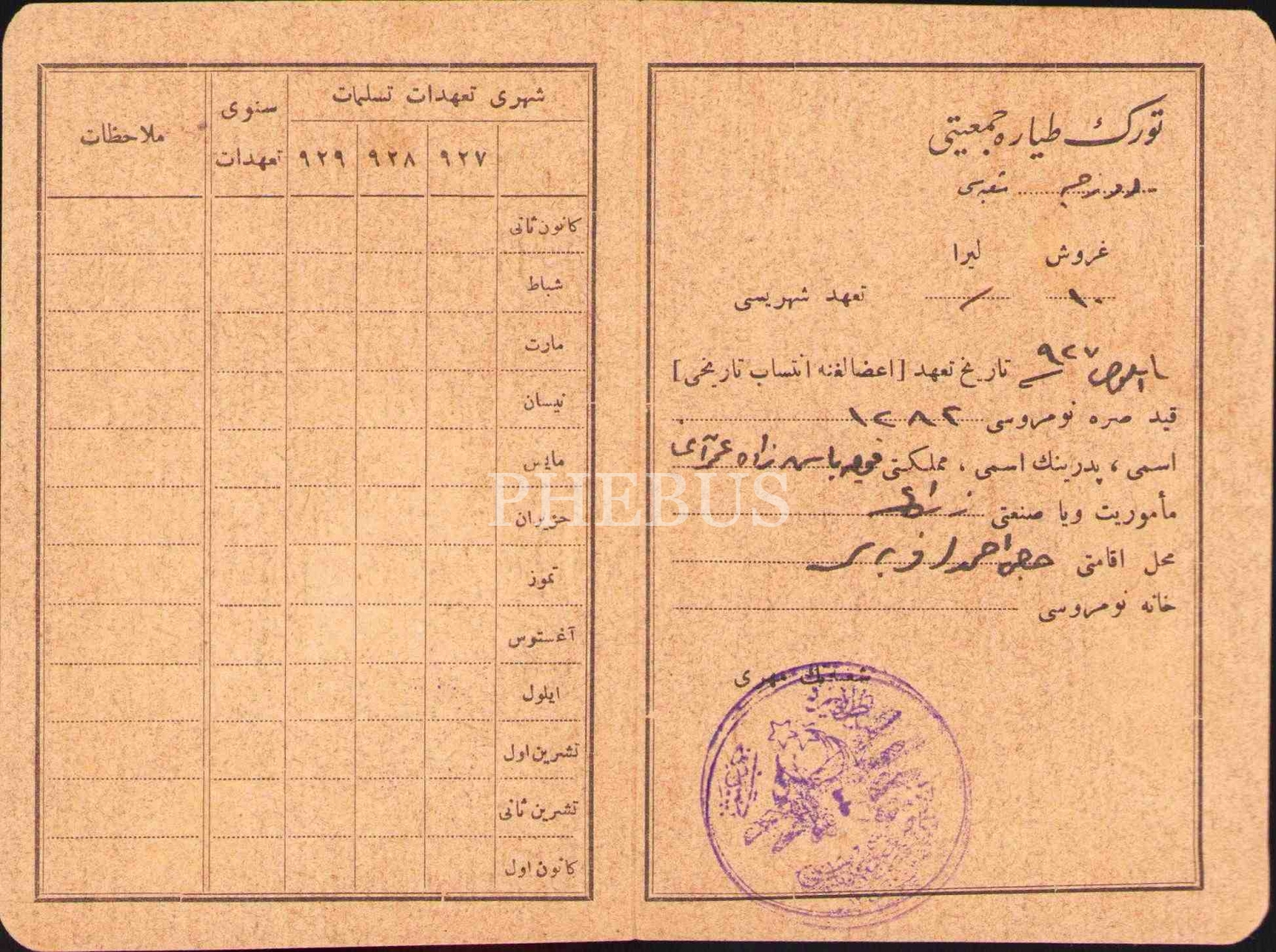Osmanlıca Türk Tayyare Cemiyeti üye taahhüt varakası, 1927 tarihli, 12x16 cm