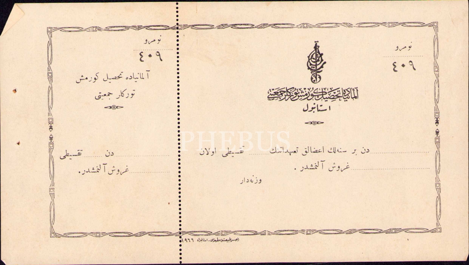 Osmanlıca Almanya'da Tahsil Görmüş Türkler Cemiyeti-İstanbul antetli boş aidat makbuzu, 12x21 cm