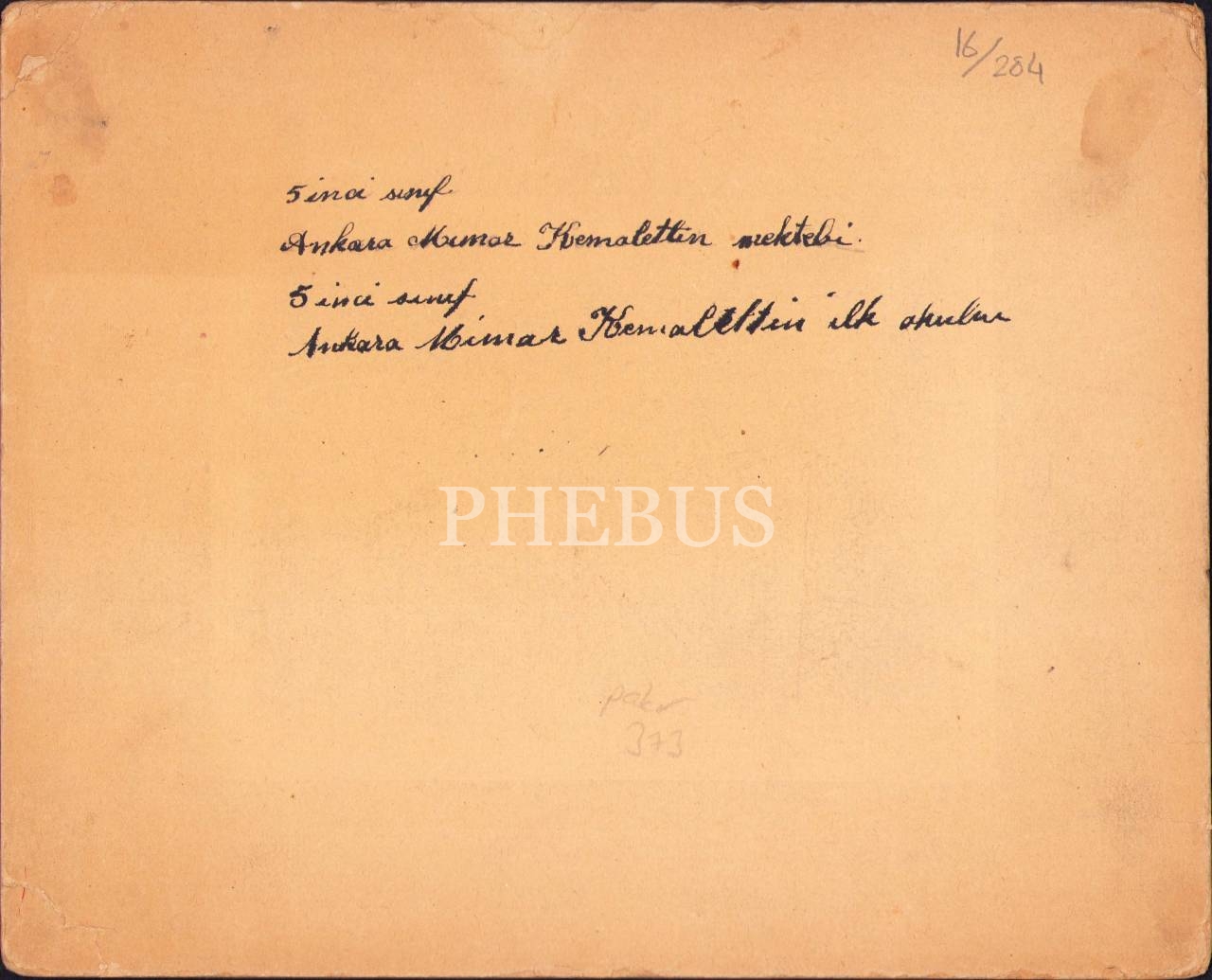 Okul hatıra fotoğrafı, Ankara Mimar Kemalettin İlkokulu, paspartulu, foto: 12x17 cm, paspartusu yıpranmış haliyle