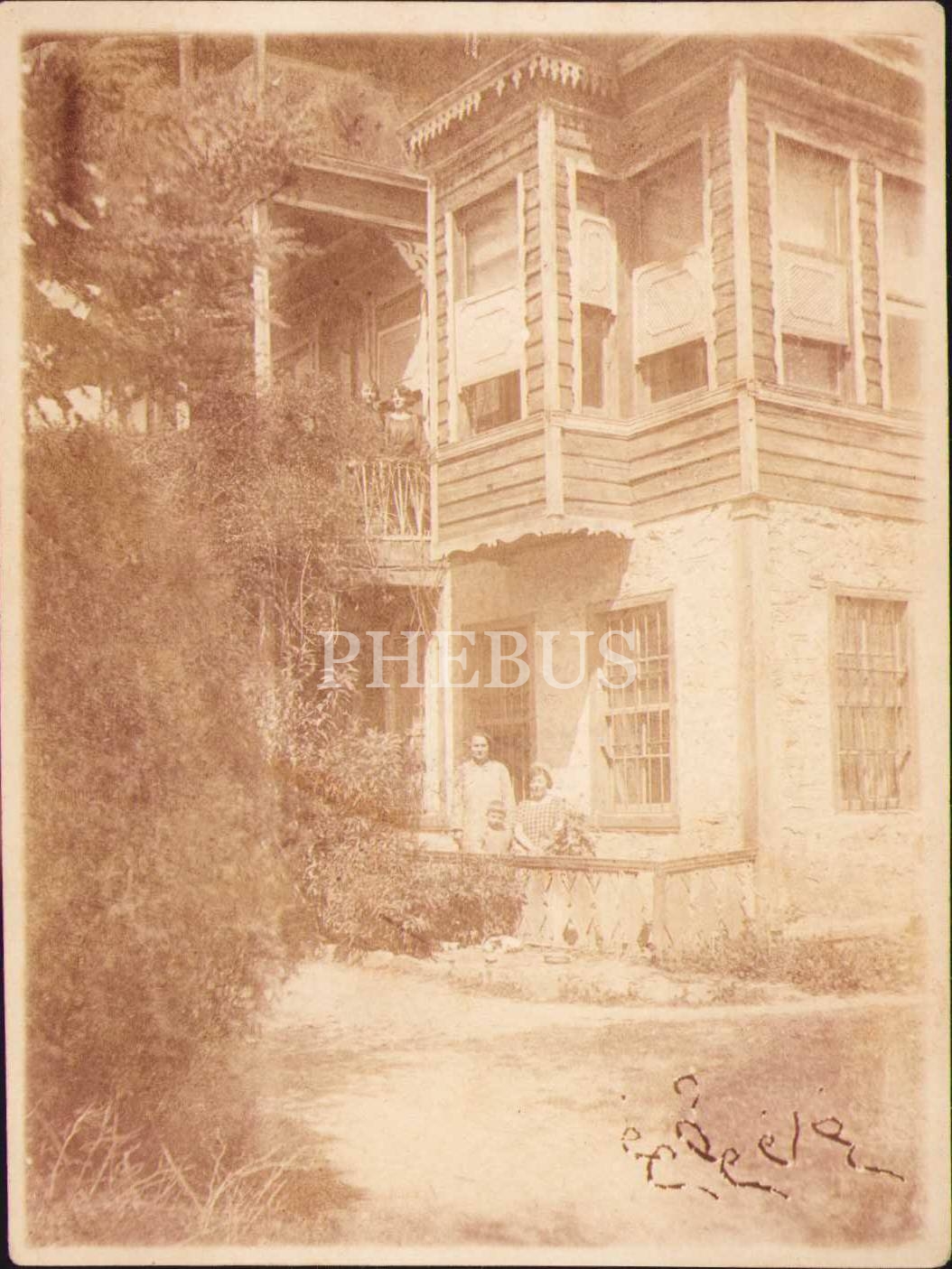 Köşk önünde hatıra fotoğrafı, Osmanlıca Foto Fahir damgalı, 9x12 cm,