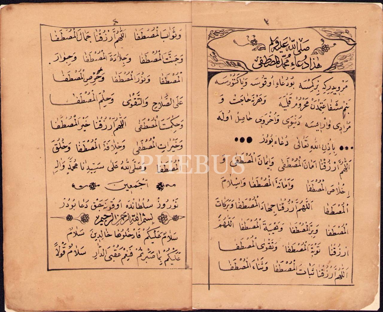 İçerisinde "Dua-i Muhammed Mustafa", "Berat Gecesi Duası", "Cuma Gecesi Duası", "Uyku Duası", "Haza Şerh-i Ahmed Nebevi", "Hatm-i Şerif", "Haza Şerh-i Mühr-i Şerif" gibi başlıklar bulunmaktadır.