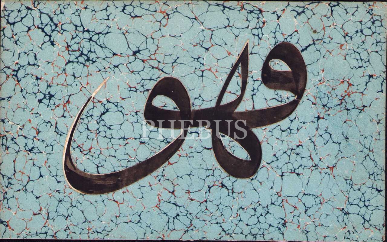 Celi Sülüs El Çekme Kaatı Yazı, Ebru Üzerine Yapıştırılmış, 22x14 cm