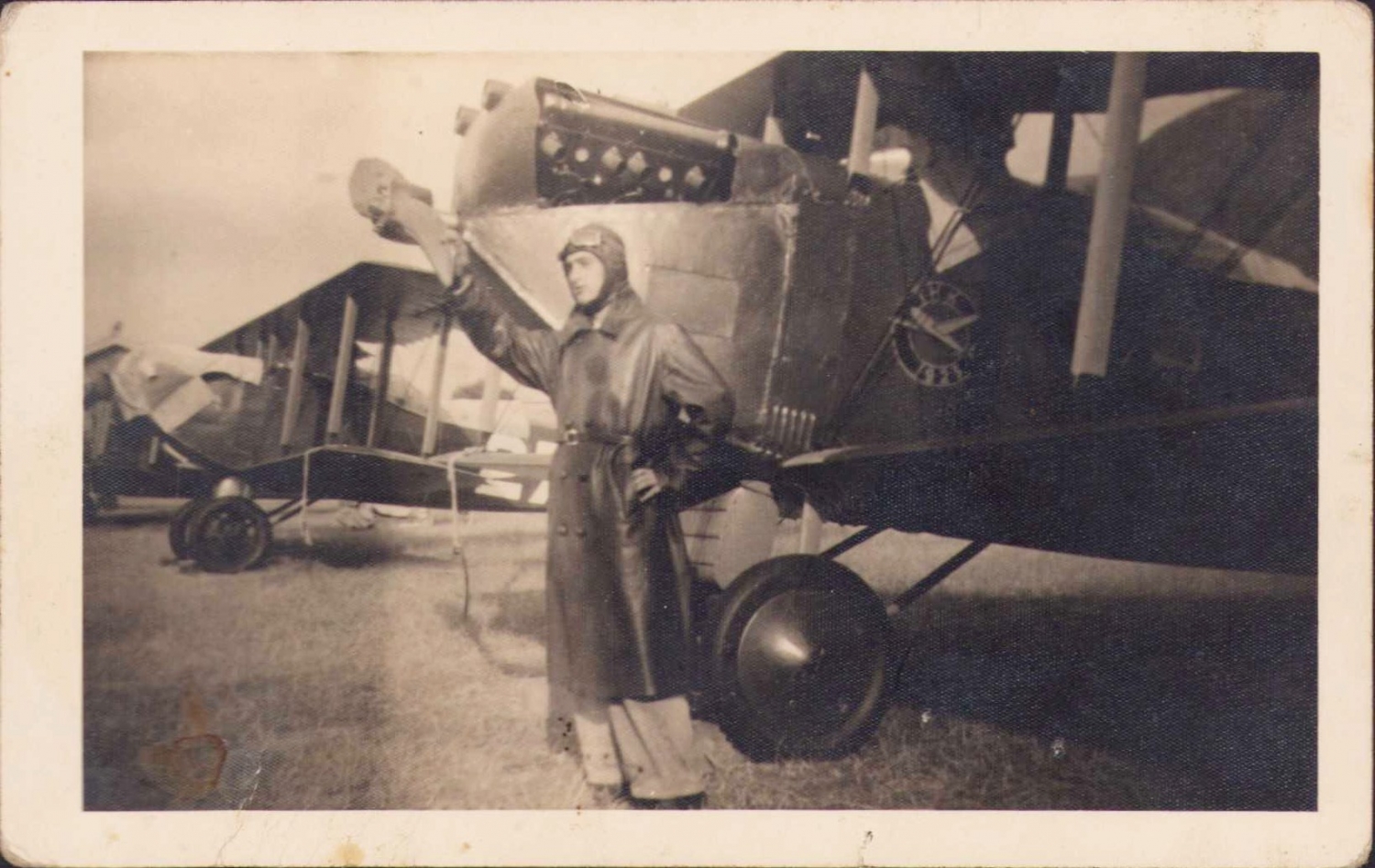 Türk tayyare Pilotu Macit Büyüketi, THK 1923 yazılı uçağın önünde hatıra fotoğrafı, 1940 tarihli, arka yüzü ithaflı, 14x9cm