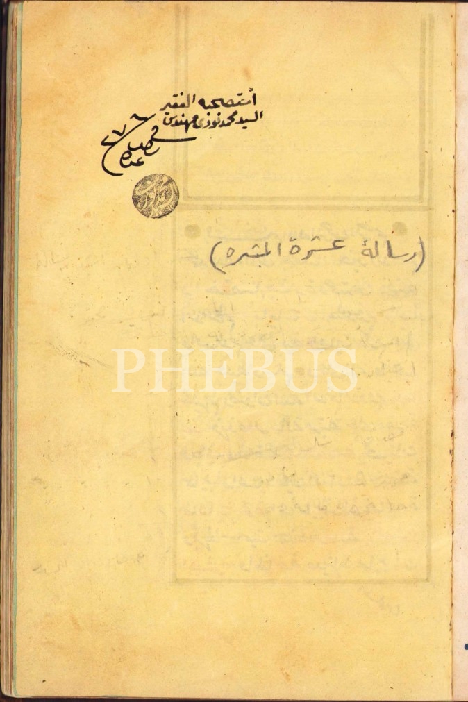 El Yazması Aşeretü'l Mübeşşere, ilk sahifesinde "es-Seyyid Mehmed Nuri Mühendis 1276" yazılı olup mührü bulunmaktadır, 37 varak, iç kapaklar ebrulu, kahverengi altın deri cildinde, 12x18 cm