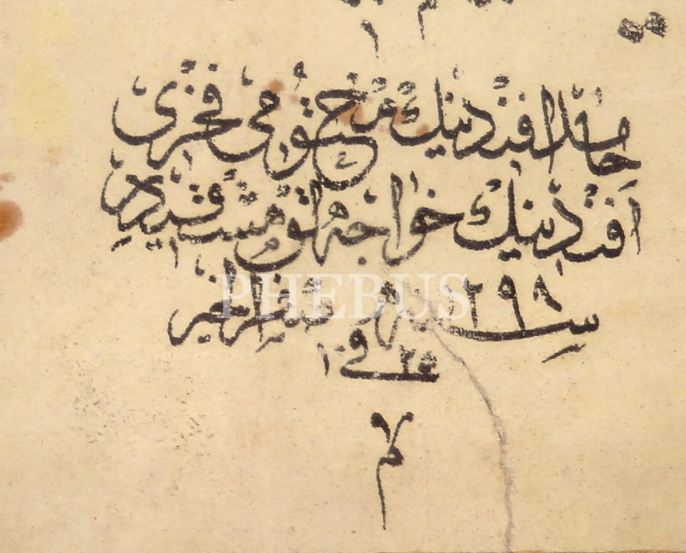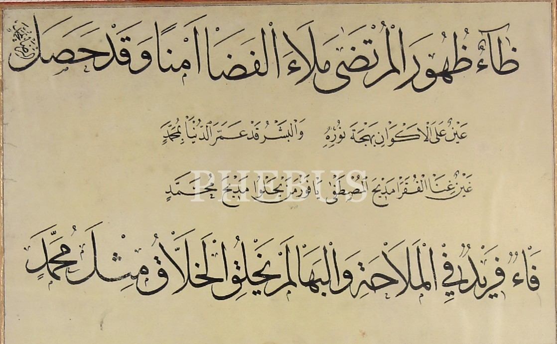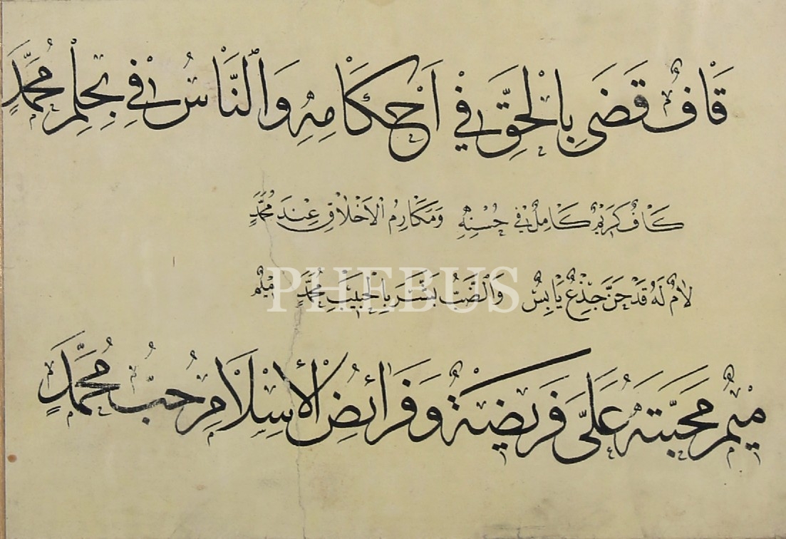 Sülüs Nesih Meşk, alt kısımda "Fahri Efendi'nin Hocalık Meşkidir" notu yazılı, 1298 târihli, çerçeveli, 82x57 cm