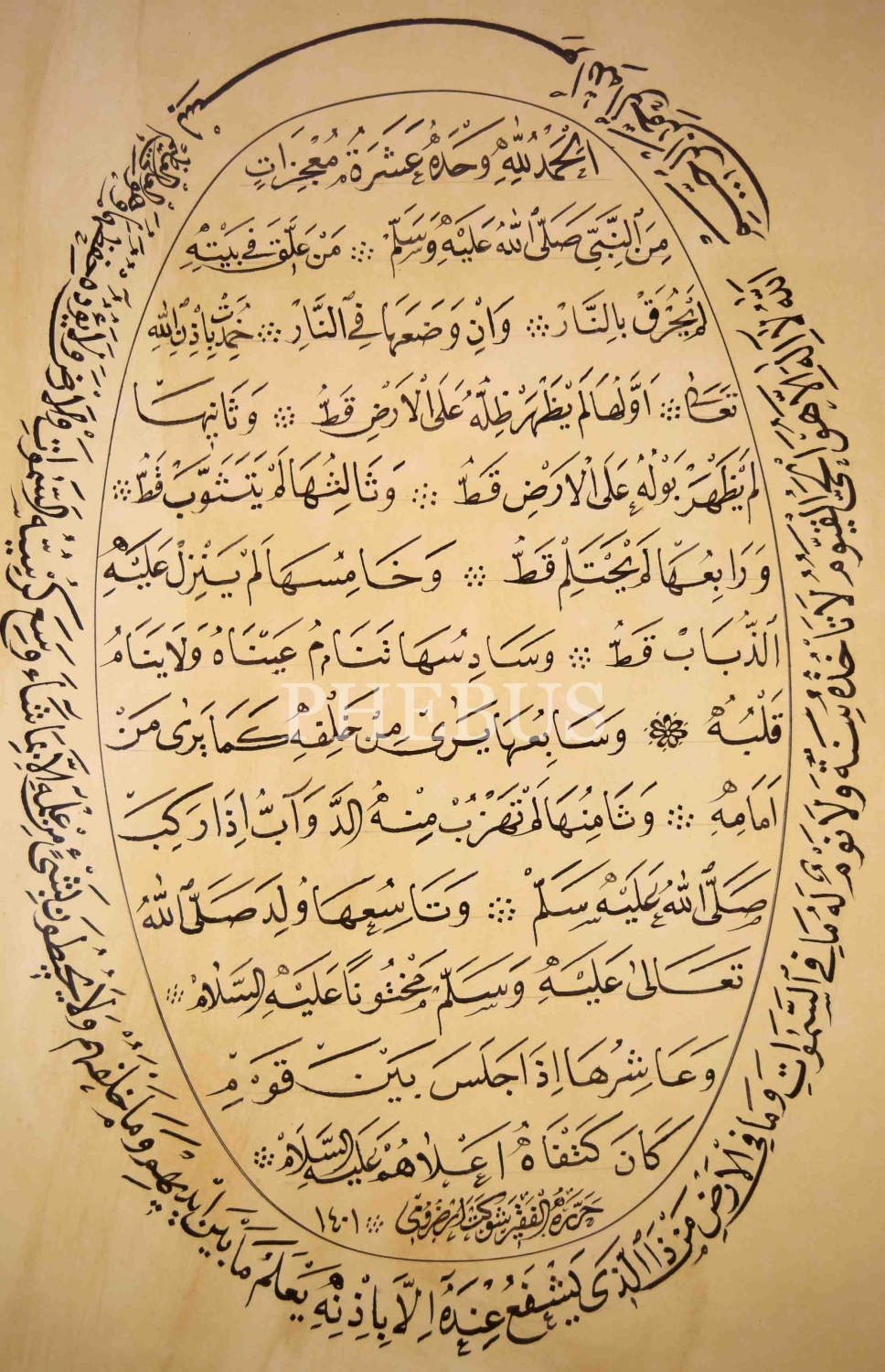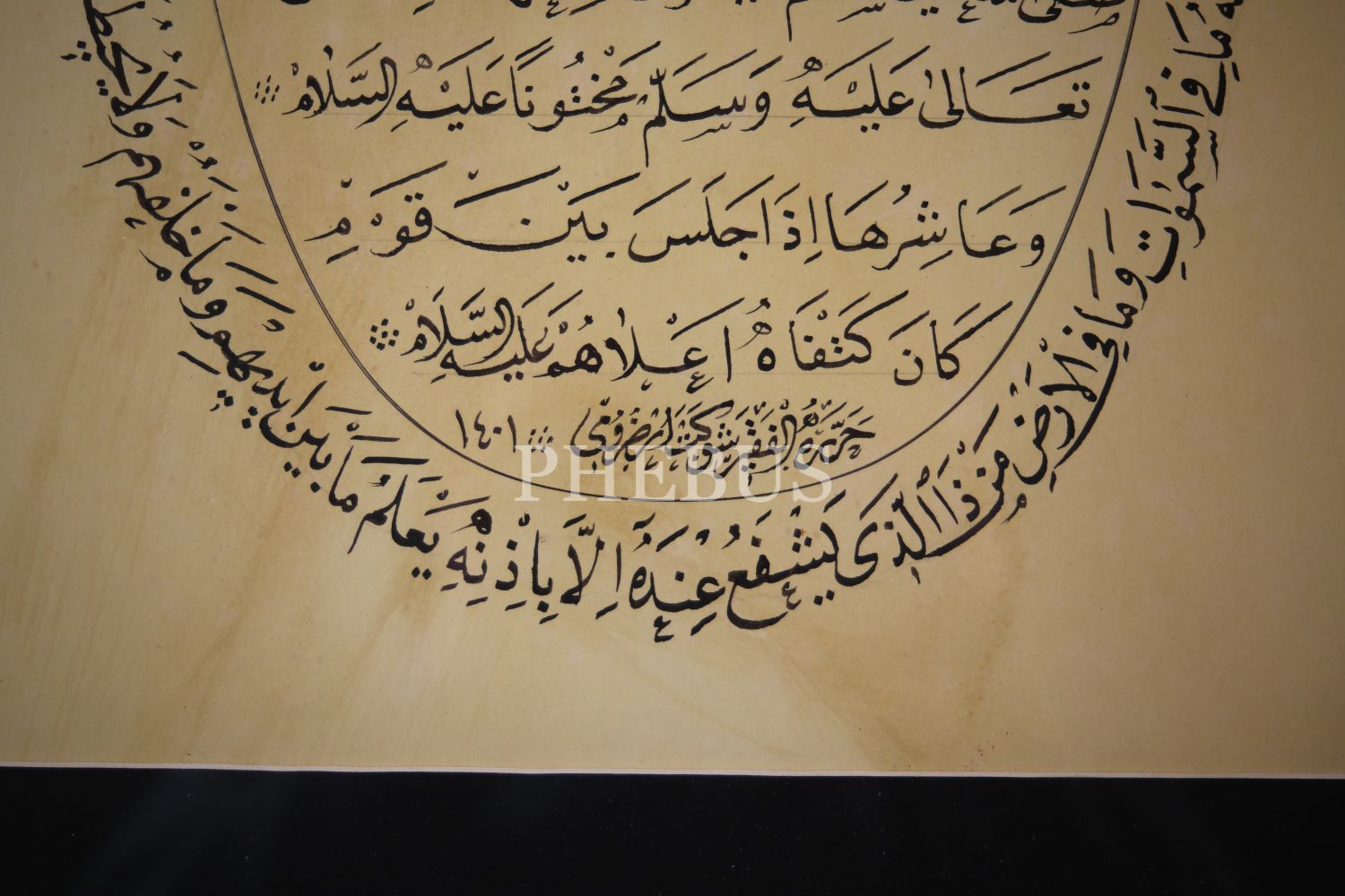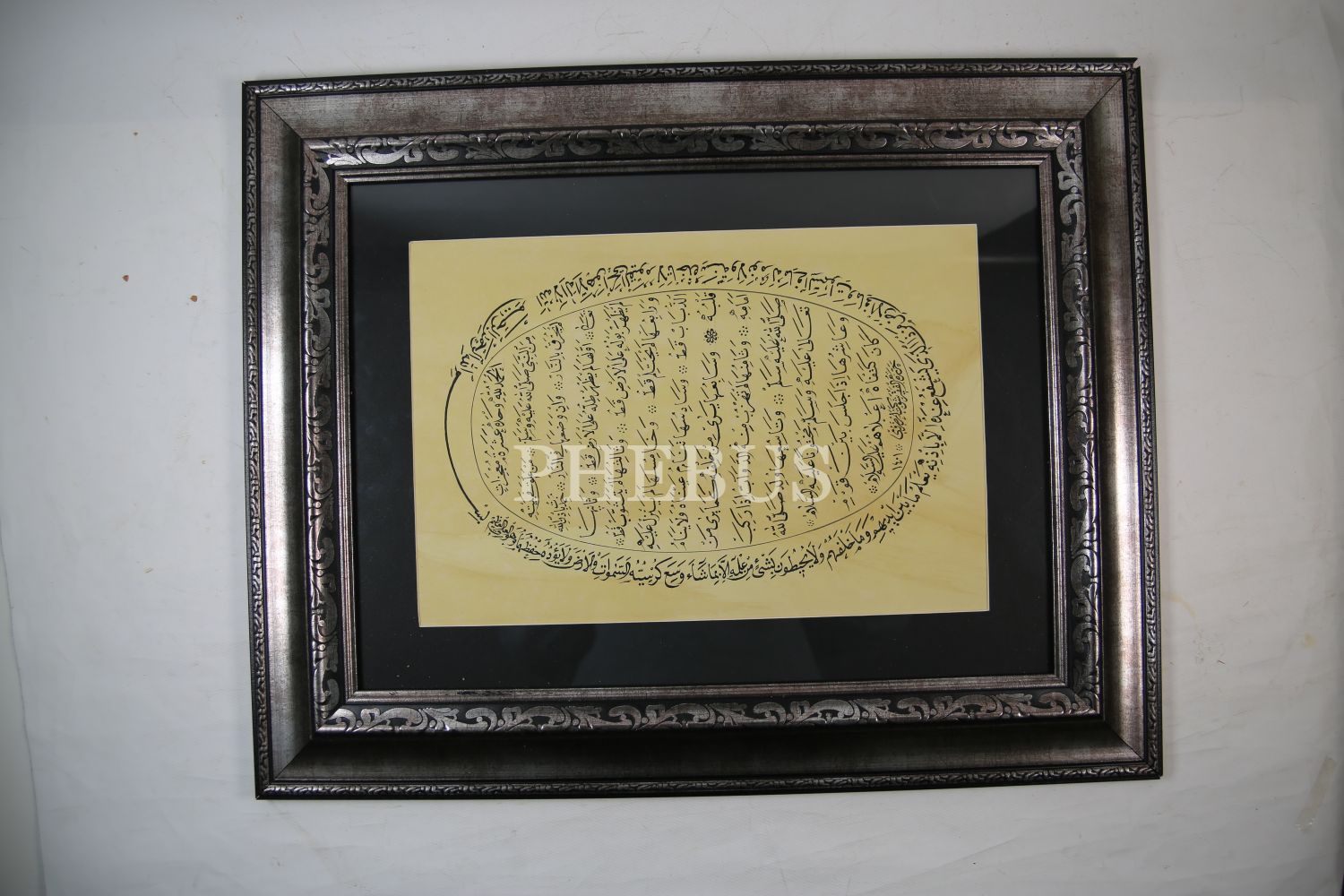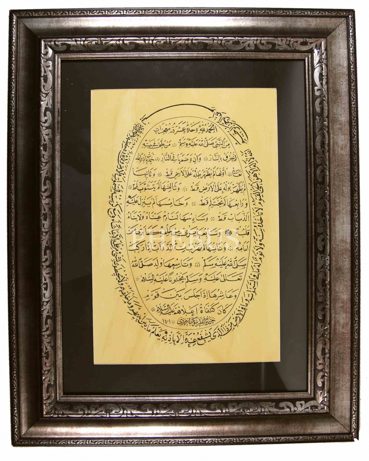 Aşere-i Mucizât [Peygamberimizin On Mucizesi], Etrâfı Nesih Yazı ile Besmele-i Şerife ve Ayete'l Kürsî, Hattat Şevket Erzurumî [Şevket Özdem] Ketebeli, yazı: 40x20 cm çerçeve 65x52 cm