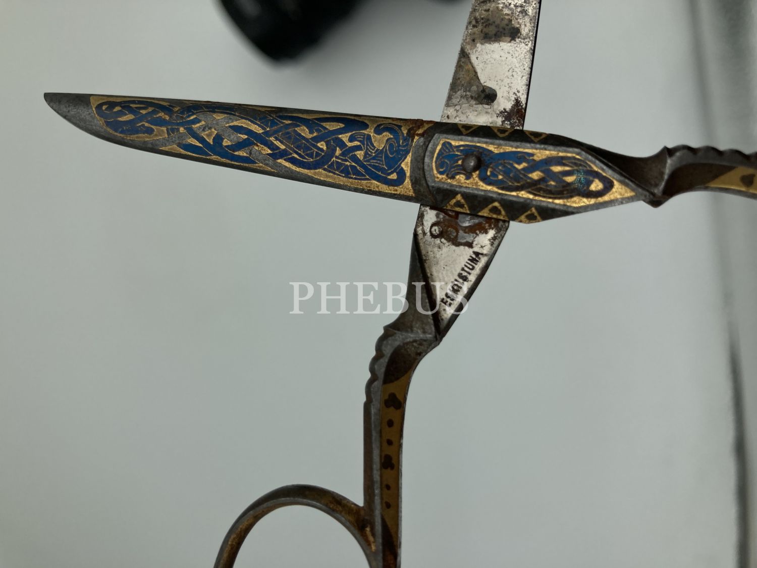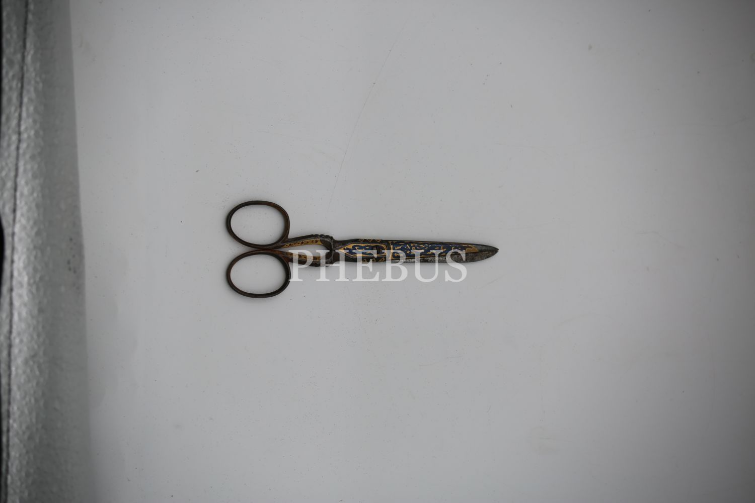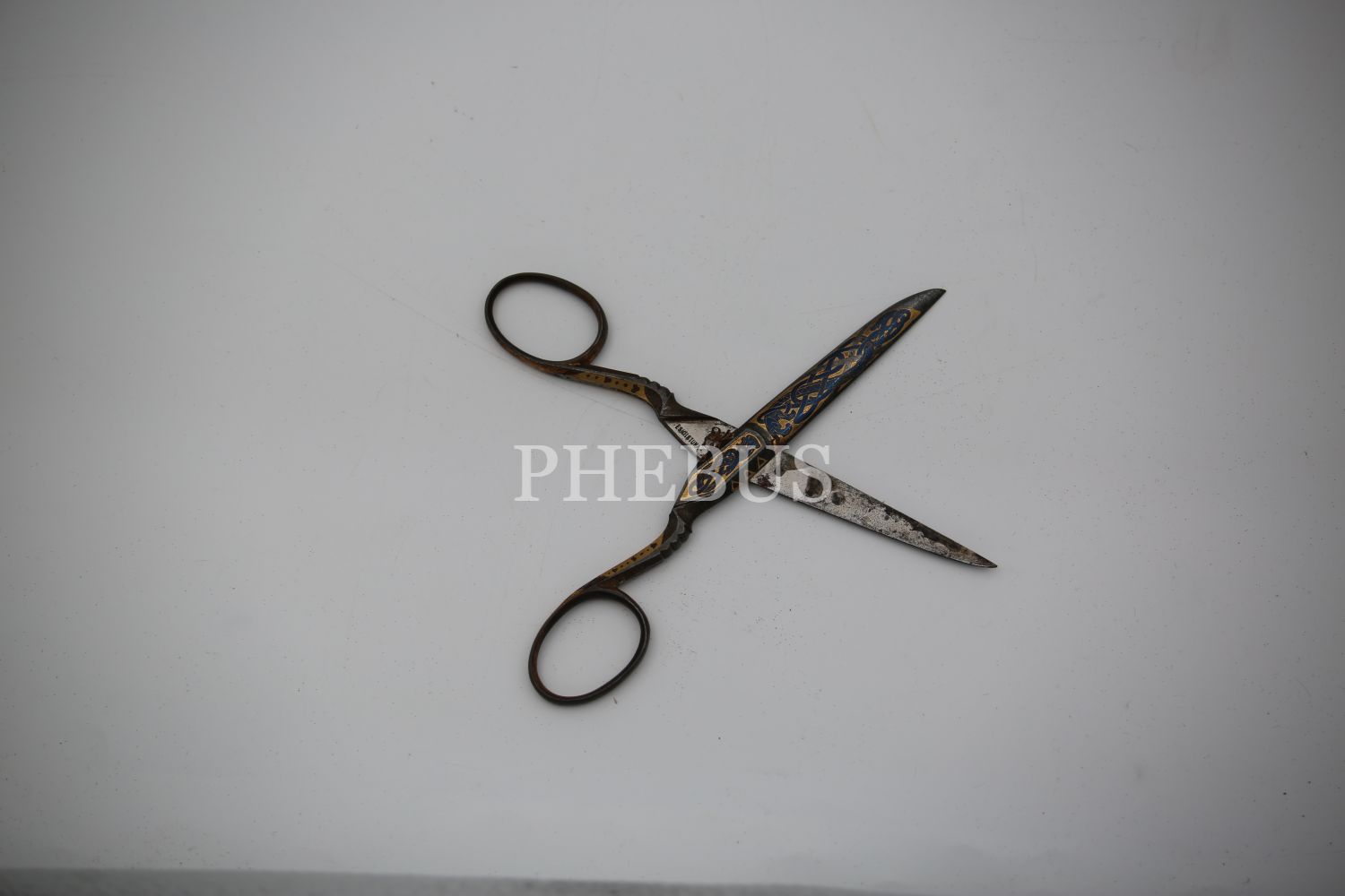 Osmanlı Dönemi Hattat Makası, metal üzeri altın tel motif işçilikli, 12x2 cm