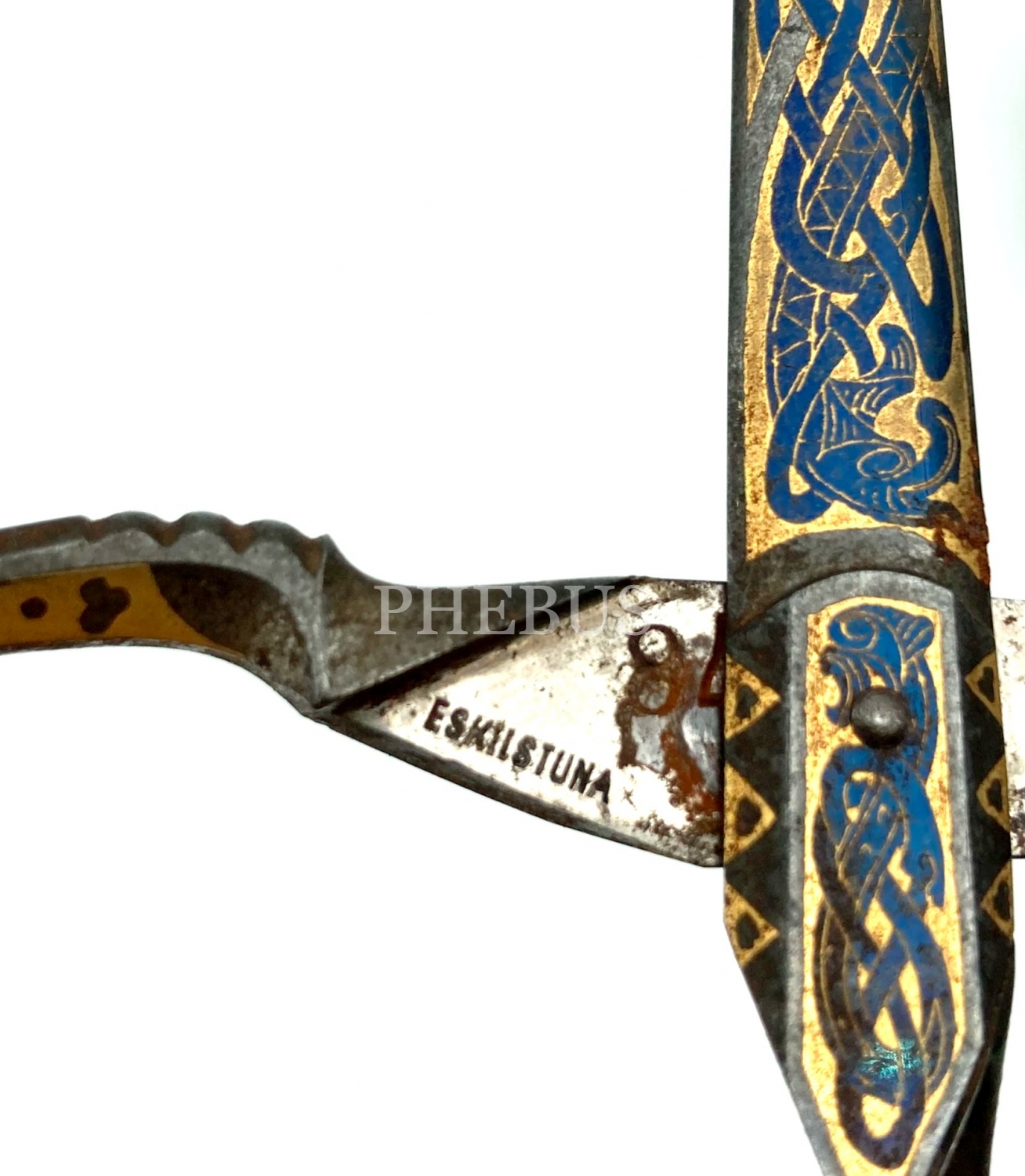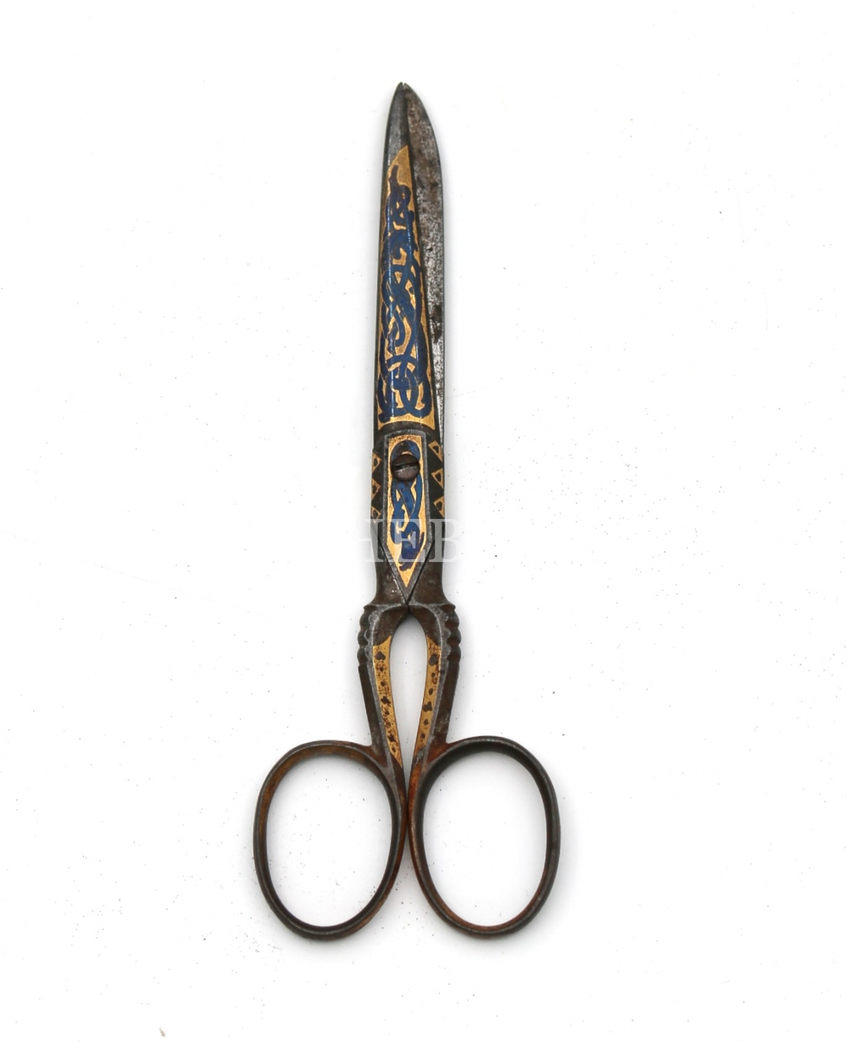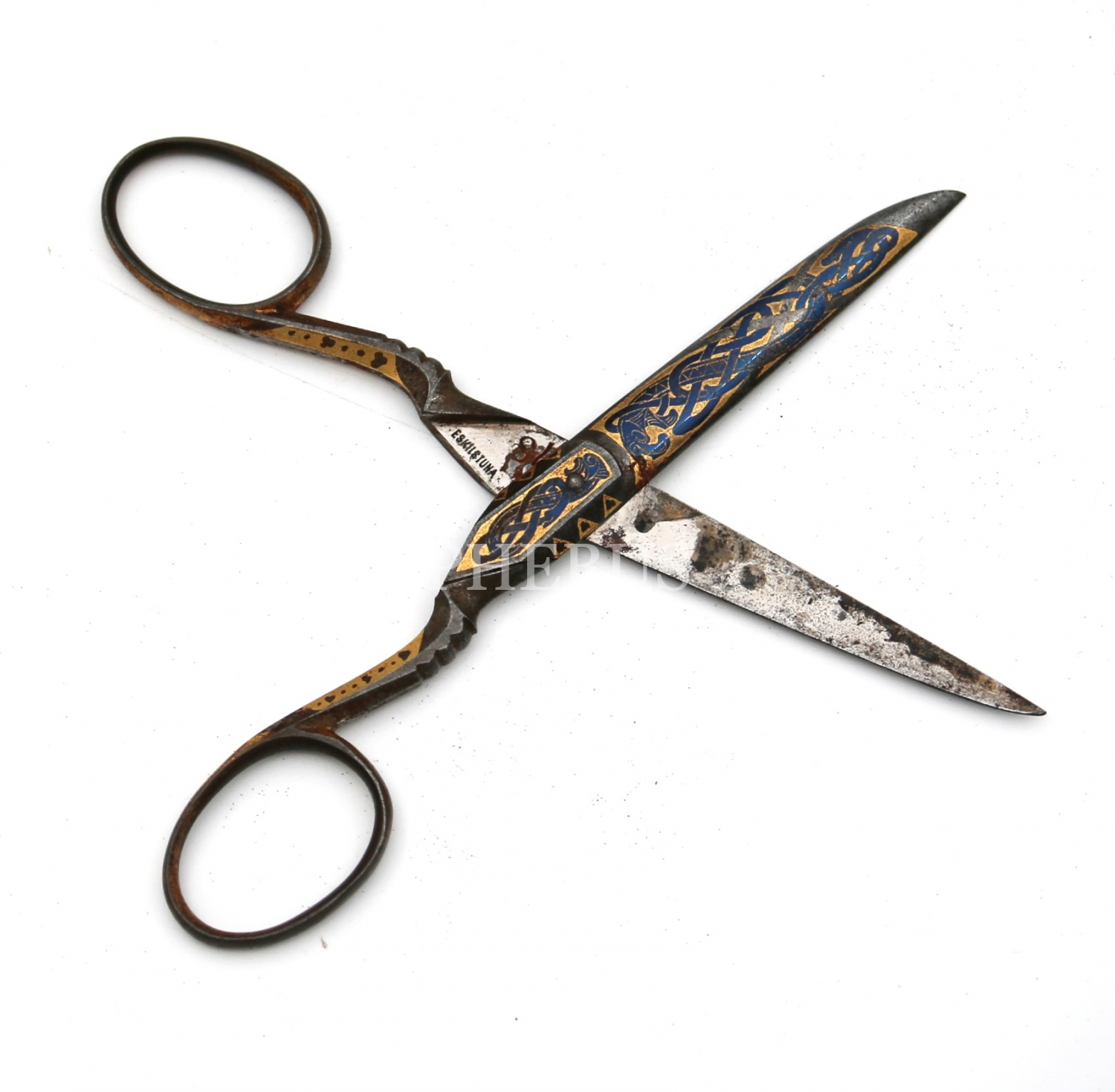 Osmanlı Dönemi Hattat Makası, metal üzeri altın tel motif işçilikli, 12x2 cm
