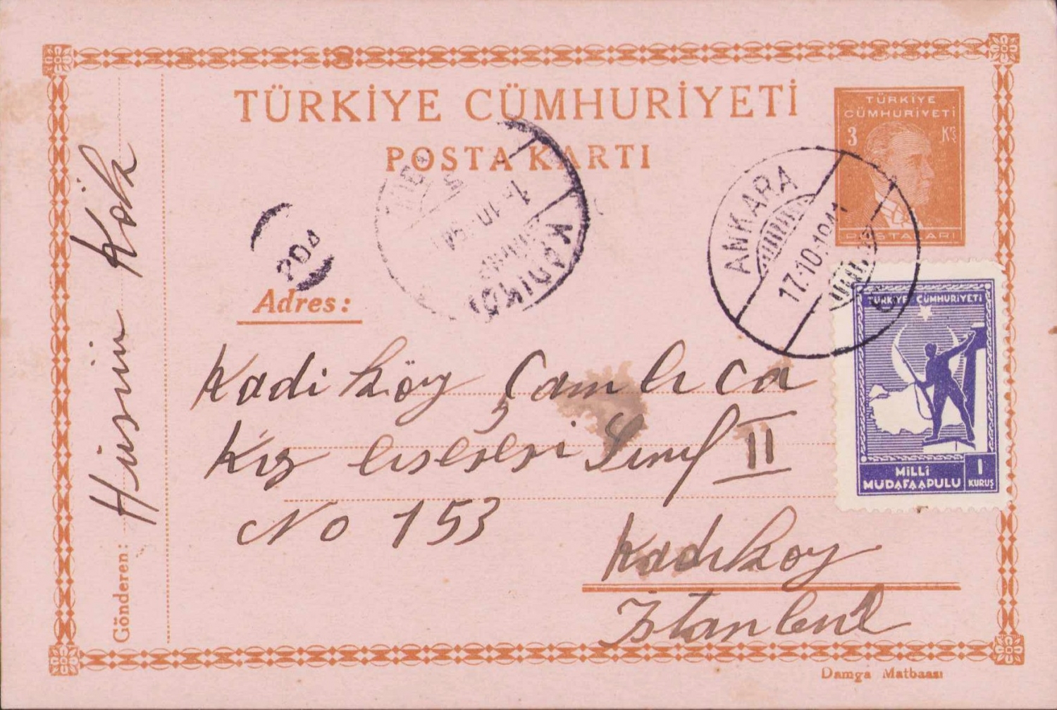 TC Türkiye Cümhuriyeti posta kartı, 1941 tarihli, postadan geçmiş, pullu, Ankara damgalı, 15x10cm