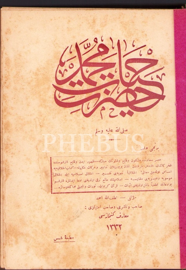 Osmanlıca Hayât-ı Hazret-i Muhammed [2 cilt], Lütfullah Ahmed, Maarif Kütübhanesi, İstanbul 1332, 656 s., 14x20 cm, 2. cilt ÖZEGE No: 7114