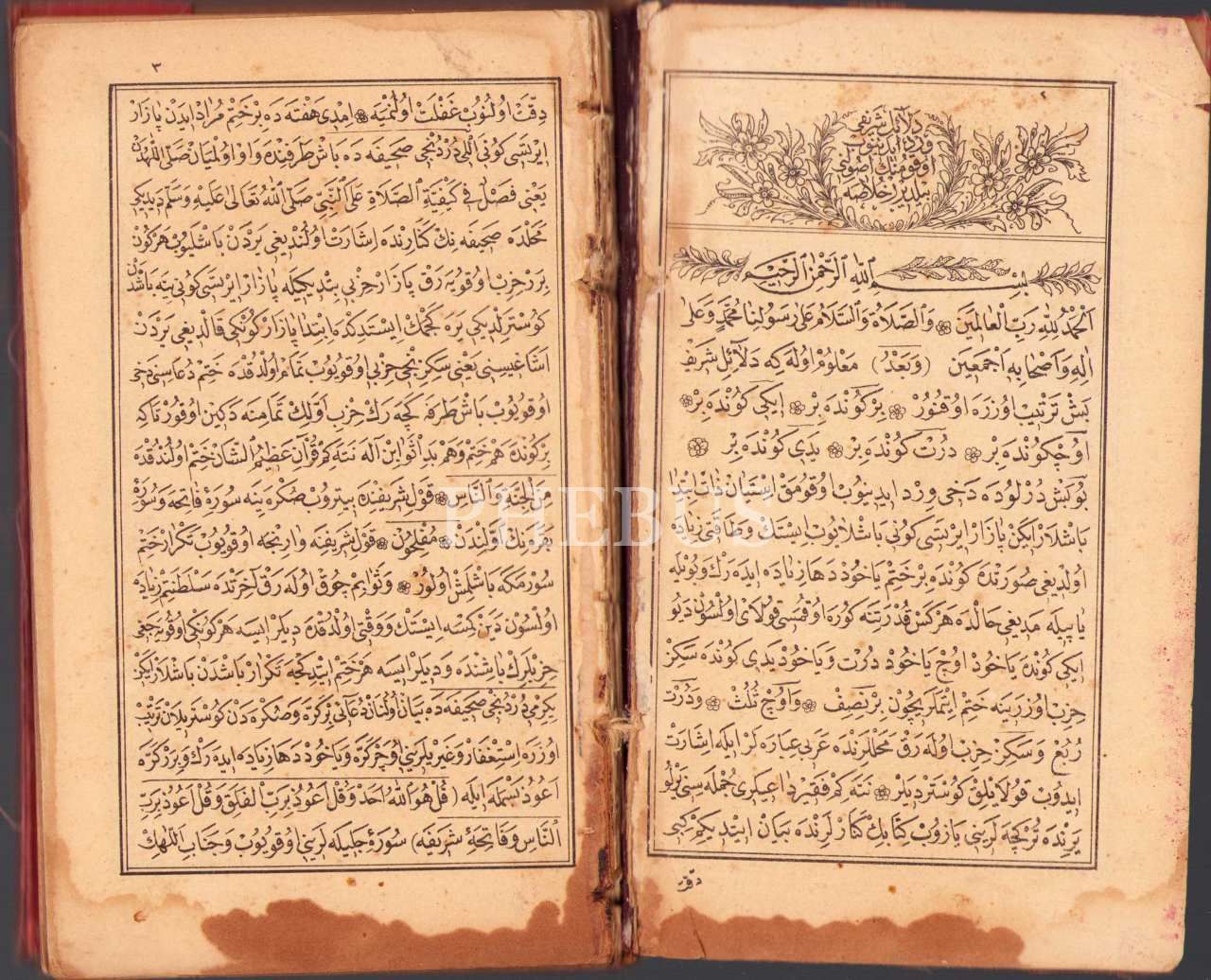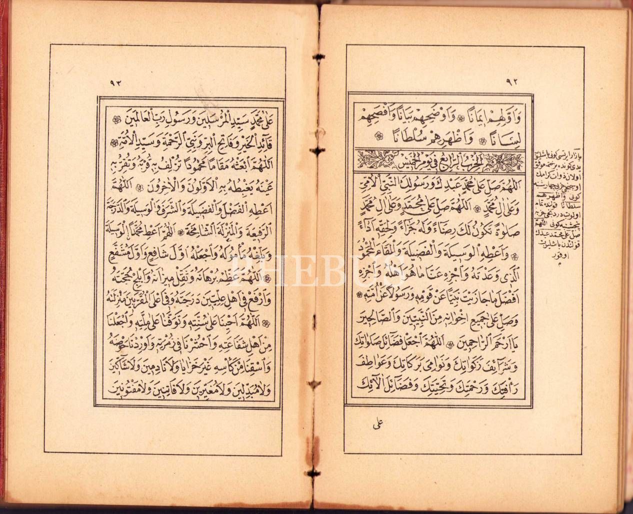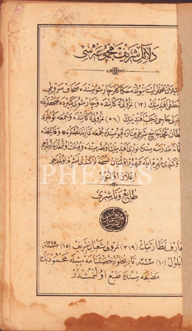 Delâil-i Şerîf Mecmûası, Osman Nuri, Mahmud Bey Matbaası, 1326, 287 s., 11x19 cm, sırtı ayrık, su görmüş ve cildi yorgun haliyle