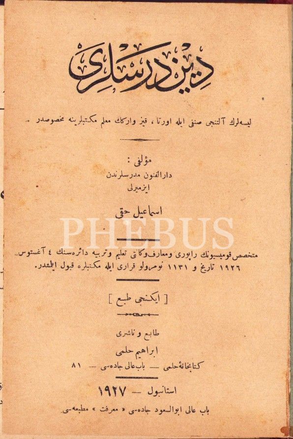 Osmanlıca Din Dersleri, [İzmirli] İsmail Hakkı, Marifet Matbaası, İstanbul 1927, 133 s., 13x18 cm, ÖZEGE No: 4048