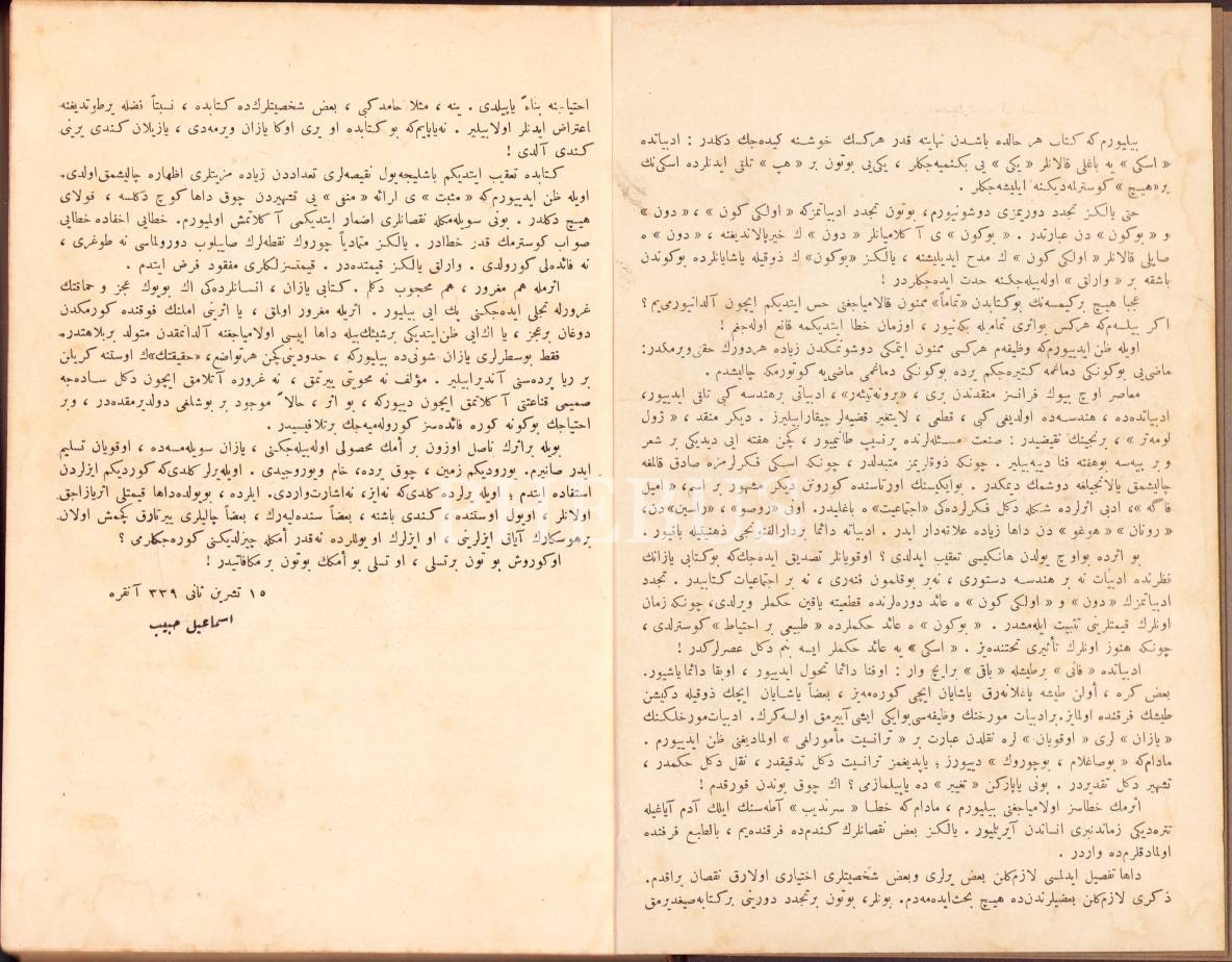 Osmanlıca Türk Teceddüd Edebiyâtı, İsmail Habib [Sevük], 702 s., 16x23 cm, bazı sayfaları yırtık ve cilt sırtı kopuk haliyle