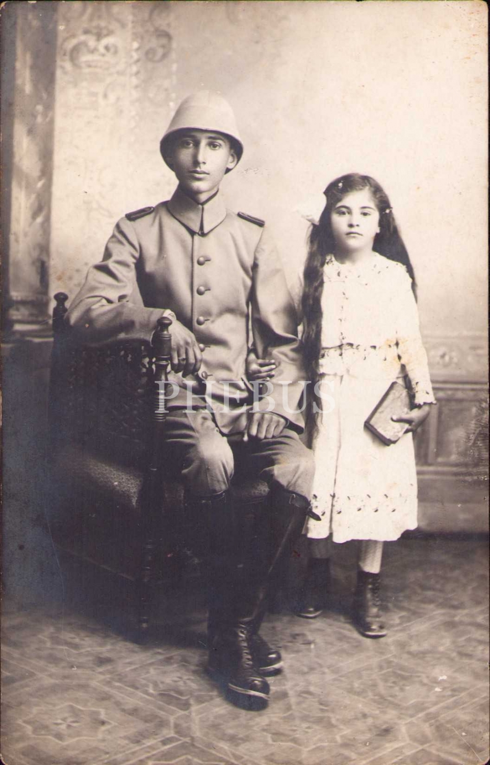 Elinde kitabı olan bir kızla poz veren asker fotoğrafı