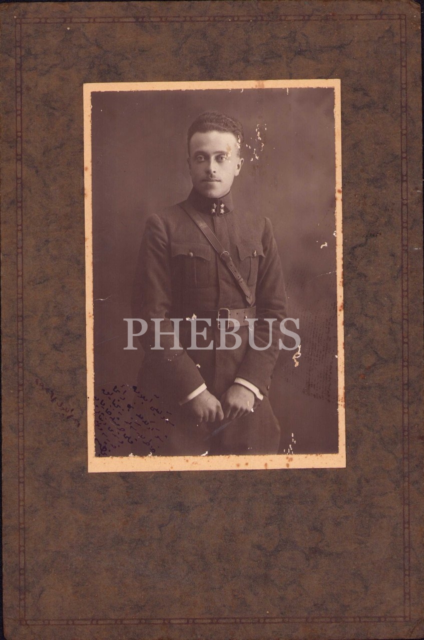Osmanlıca ithaflı subay hatıra fotoğrafı, 1926 tarihli, paspartulu, foto: 11x16 cm, fotoğraf yorgun ve paspartusunun köşeleri yıpranmış haliyle