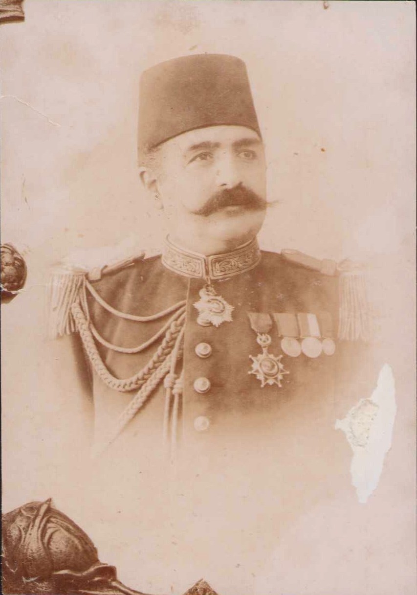Fesli madalyalı Osmanlı Paşa portresi, kenarlarından kesilmiş, 7x10 cm