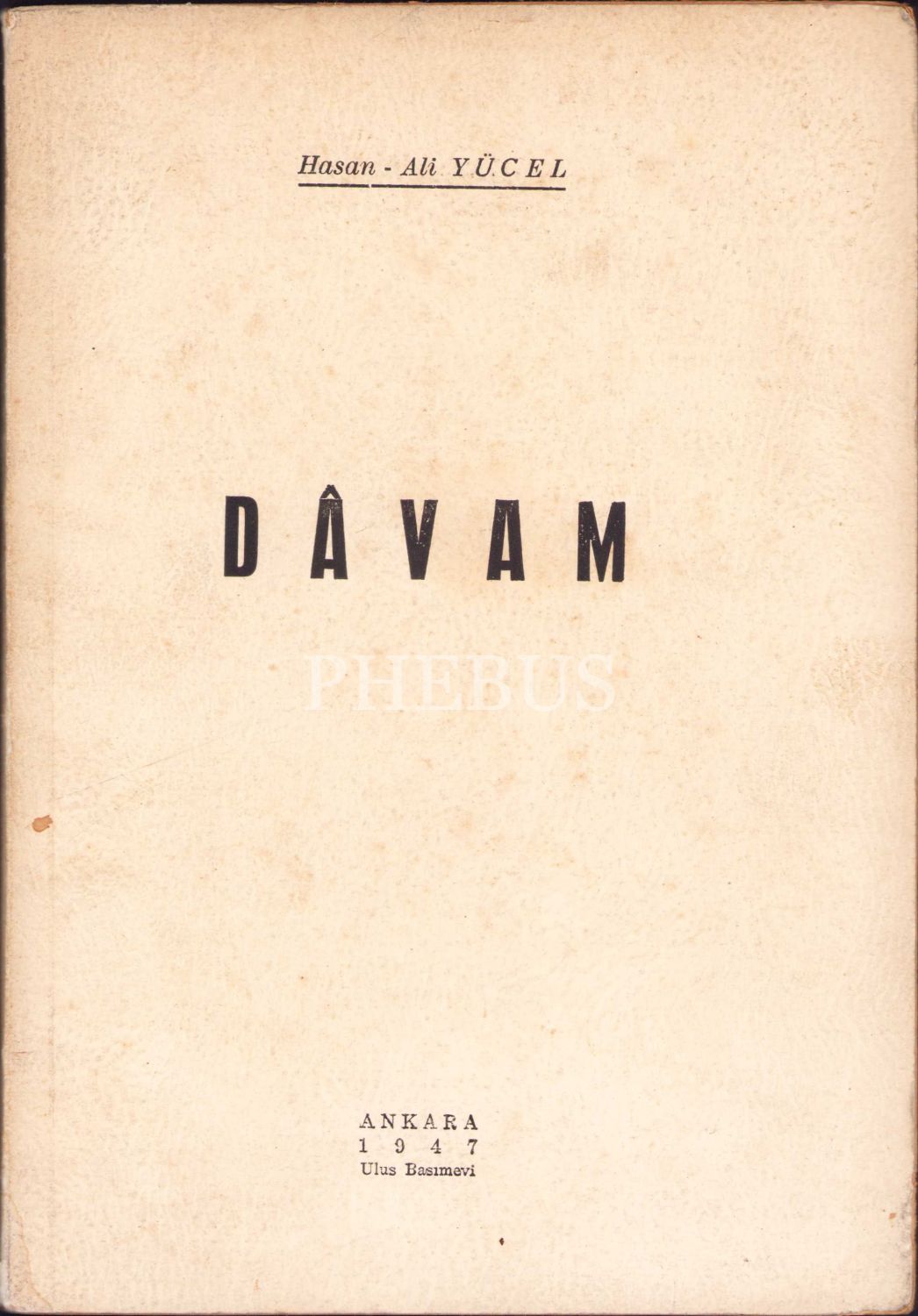 Dâvam, Hasan Âli Yücel, Ulus Basımevi, Ankara 1947, 156 s., 17x24 cm, yorgun ve sayfaları açılmamış haliyle